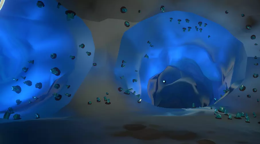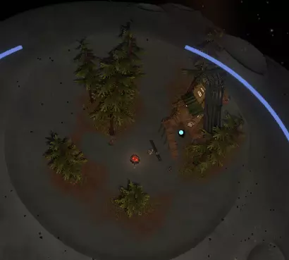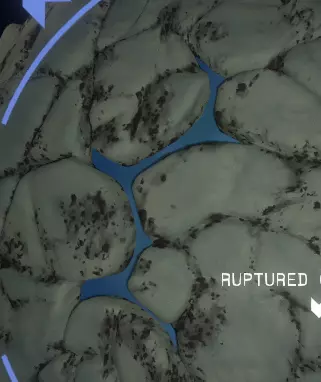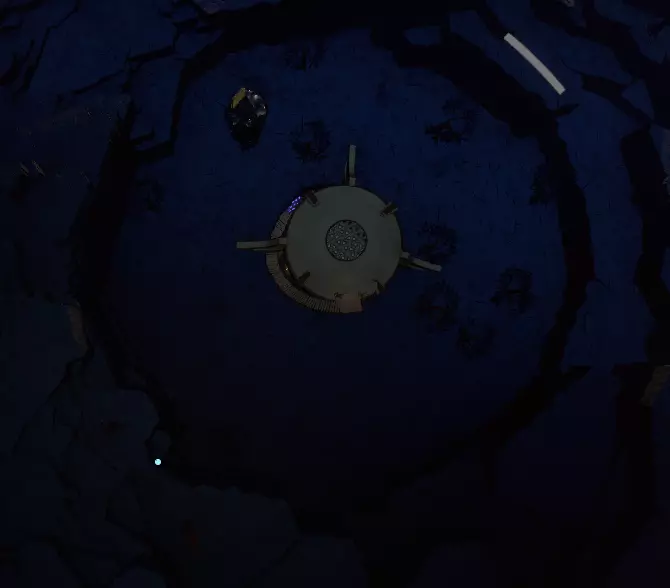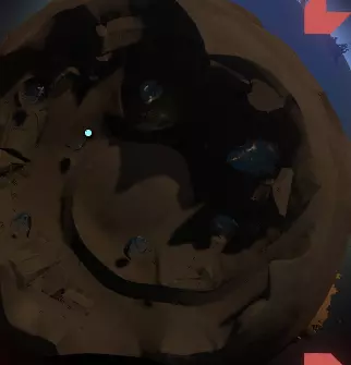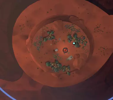 看起来有点像上面那张从太空中拍摄的图片。它离你的家乡陨石坑不远。有几种进入它的方法:驾驶你的航天飞机飞到它上方,然后将航天飞机降落到陨石坑内部的地面上;在陨石坑外着陆,你会发现一根倾斜的原木,可以沿着它走下去;使用你的喷气背包,从陨石坑崎岖的侧壁跳下去。