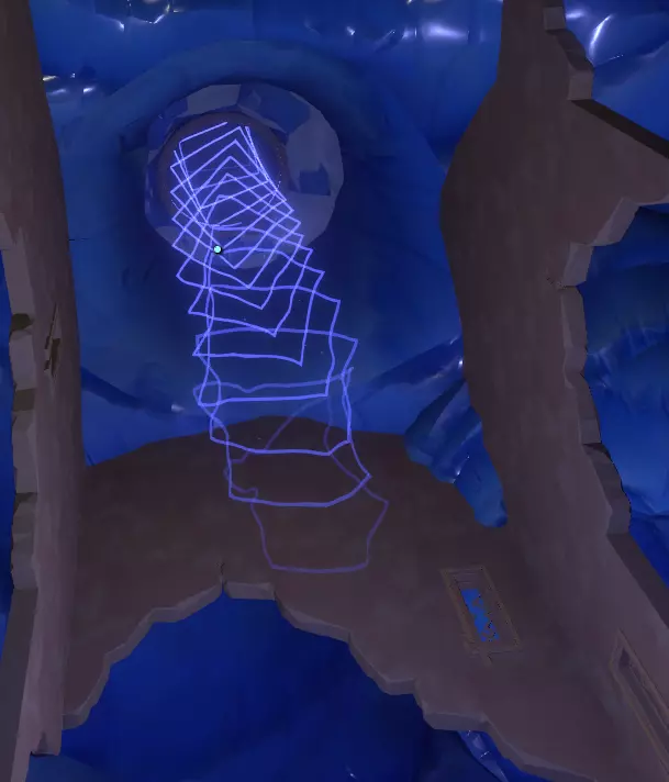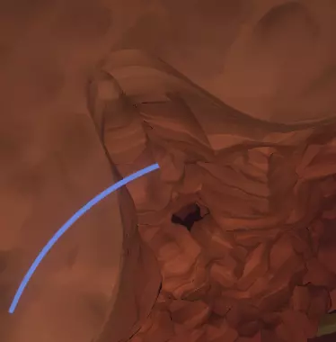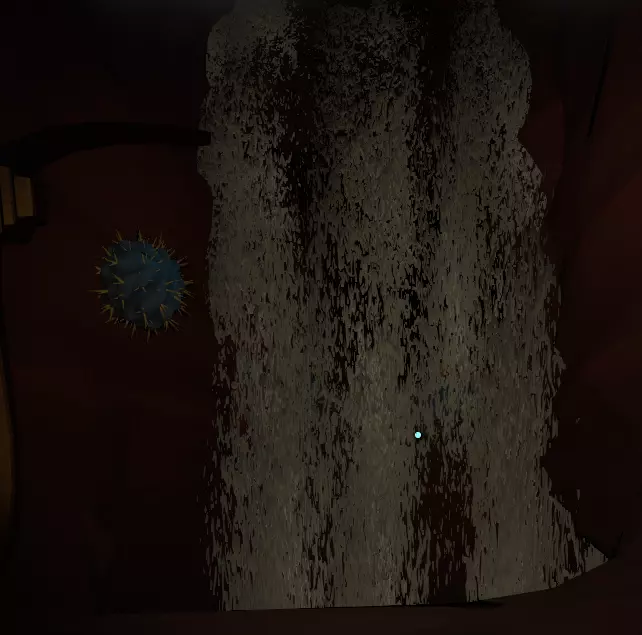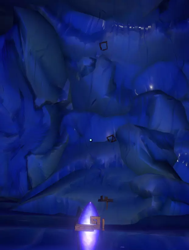 翻译这段录音在这里是绝对必要的,因为它会告诉你该选择哪条隧道。 选择树左边的那条。或者,快速向其他隧道或其附近发射侦察兵,就能发现“不行,不行,不行!”的提示。 进入这条隧道后,要慢慢滑下去,底部有一个你绝对不想掉进去的洞。 在洞的另一边,沿着外侧滑行,你会找到一个可以站立而不会持续滑动的地方。 现在拿出侦察兵发射器,抬头向你上方的屋顶或任何侦察兵能附着的地方发射一个侦察兵。 借助侦察兵发出的额外光线,你现在应该能看到右边有一个 ledge(平台)。 向上喷气到这里,你会看到一个宽阔的、略带蓝色的隧道入口。