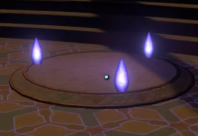 我们要从没有屋顶的那一侧进入,没关系,你会注意到有一个浅浅的凹陷,你可以站在里面。在里面等待,直到沙柱刚好从塔顶漫过,然后迅速向前踏入沙柱中心。如果操作正确,呼的一下!你就会进入余烬双星的加固核心。现在向前走,就能看到一堆诺玛伊面具附近有三个漂浮的圆环。