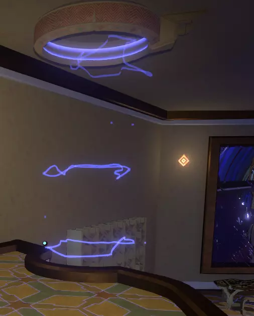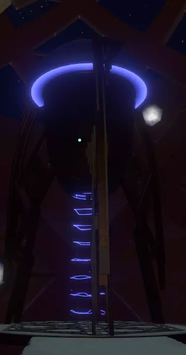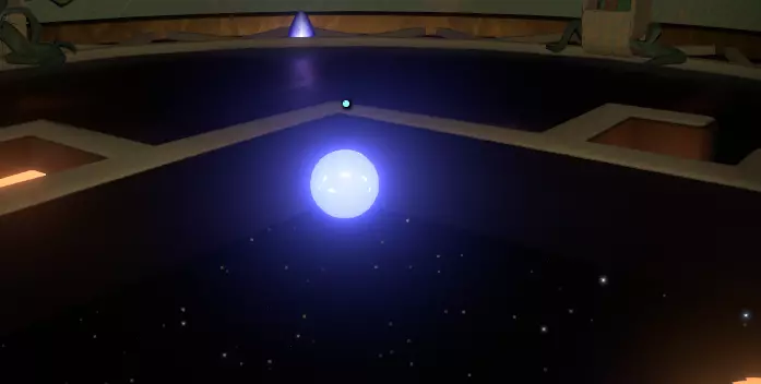 这些图标现在终于派上用场了。 前往那个从地板上升起的三面装置,在每一面上使用球体,通过连接点来绘制出图标。 完成所有三面后,界面装置会降回地面,你会看到一个空心管和另一个蓝色球体。 将球体向上移动,即可传送到宇宙之眼! 如果你输入了正确的图标,当你移动空心管中的球体时,就会立即传送;如果没有,则无法传送,请重试。 正确完成后,前往主观察窗口,欣赏这绝对是最壮丽的景象! 如果你在一个循环内正确完成了所有这些步骤,你将解锁成就。