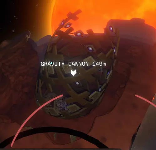碎空星 如果你已经根据卷轴提供的线索、与其他探险家的互动或飞船日志中的记录进行了探索,那么你可能已经发现下一步是前往碎空星的南部天文台。 碎空星有几个需要注意的问题: 其中心有一个巨大的旋转黑洞! 还有“碎空灯笼”——这颗环绕碎空星运行的卫星会不断向碎空星蛋壳般的表面喷射炽热的熔岩球。而除了两极地区外,碎空星几乎整个地壳都在不断崩解消失! 你可以在碎空星上探索一些有趣的地点,或者你可能希望先去寻找里贝克。由于他和南方天文台的关系非常紧密,这会是相当不错的下一步。 飞越碎空星时,你会看到一个类似这样的结构: