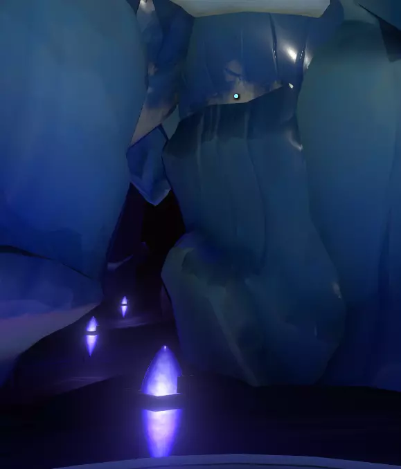 穿过这里,一直走到水晶看似结束的地方。抬头看向你左边的墙壁。