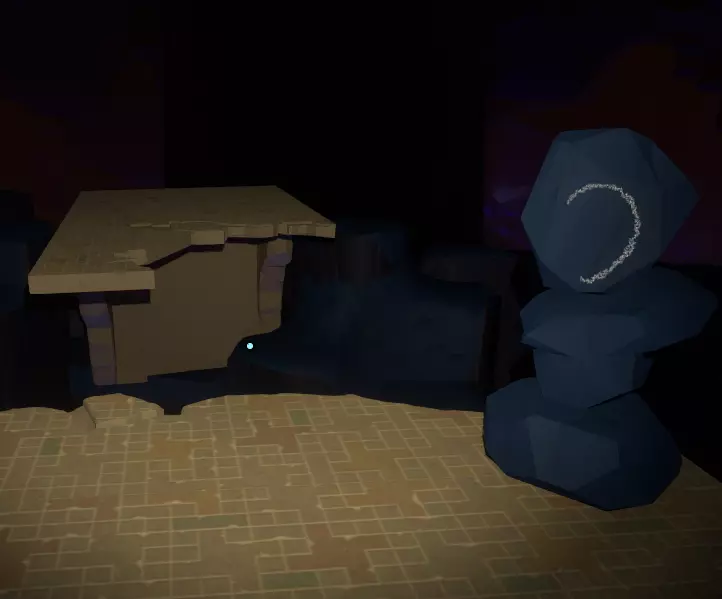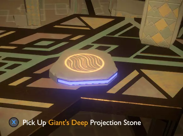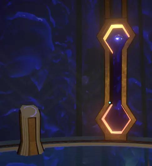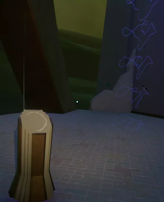它的左侧是地板上的一个坑洞,里面有两处岩石构造;其中一处有个空位,你可以把刚刚找到的投影石放在那里。