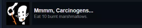 嗯,致癌物 这又是一个非常简单的成就,实际上可以在游戏的任何时候完成,而且不需要一次性完成。 方法如下: 找到营火;整个太阳系中有很多。在你第一次醒来的地方旁边就有一个。走到营火旁,按照提示烤棉花糖。不要烤焦它们!烤十个棉花糖,然后吃掉。 如果操作正确,你应该会解锁: