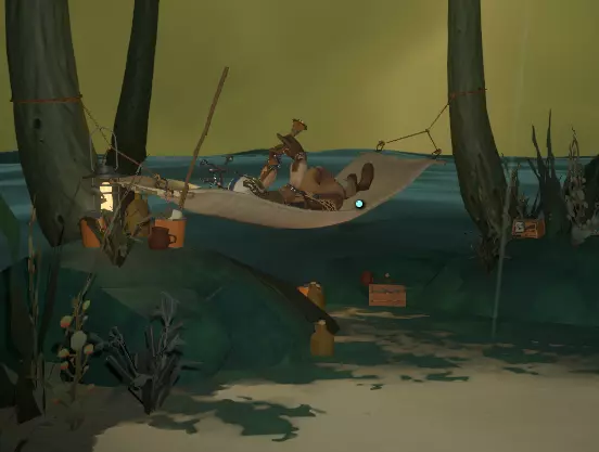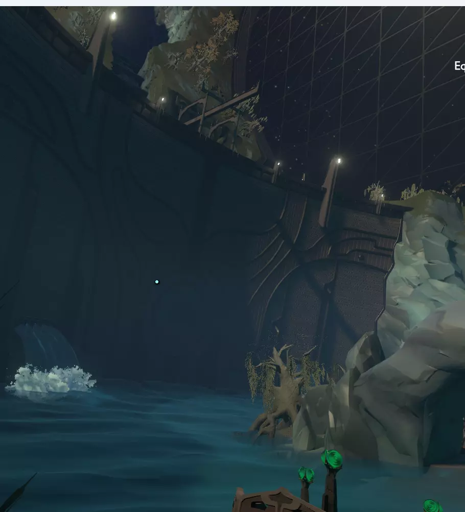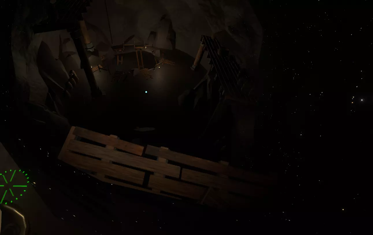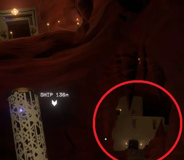 欢迎来到:陌生人号 从现在开始,你无需再通过飞船地图或传闻模式重新寻找“陌生人号”,只需找到【陌生人号】并选中它。从家园起飞后,你就能自动驾驶直接前往传送门。 如果你(或当你)进入第二个循环(你需要这样做,因为“陌生人号”内部有很多值得探索和发现的内容),你会发现【陌生人号】内部实际上有两个着陆舱,都需要你打开一扇简单的带栏杆的门。 其中一个着陆舱会直接通向如上图所示的绿灯处,另一个则会带你到一个岸边,此时水坝就在你的左前方,如上文所述。灯光处有一个木筏,灯光附近有一个能将木筏放入河中的装置。无论你从哪个方向进入,都会从河中的水坝附近开始。