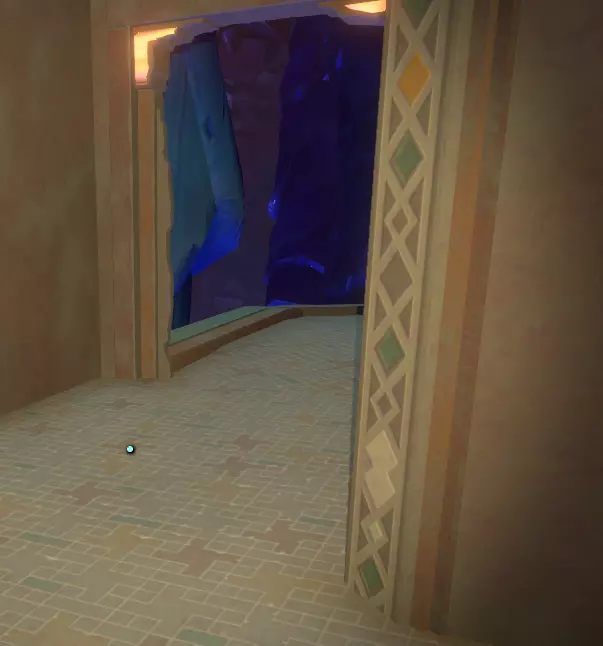 阅读完这段文字后,向上浮并寻找一条有两面文字墙的走道,一面是蓝色,另一面是橙色。