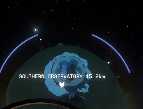 第二种方法:使用信号镜,调谐到一个口哨声;在你遇到埃斯科之前,它可能显示为【未知】。 无论哪种方法,和他交谈可以获得很多新信息,包括 hearthian 太空计划的运作方式以及就在附近的【月球瞭望台】。 和他谈完后,在【碎岩星】上另一件需要查看的主要事情是更多的【诺玛遗迹】。 这些遗迹位于这颗小卫星的南极。从太空中看是这样的: