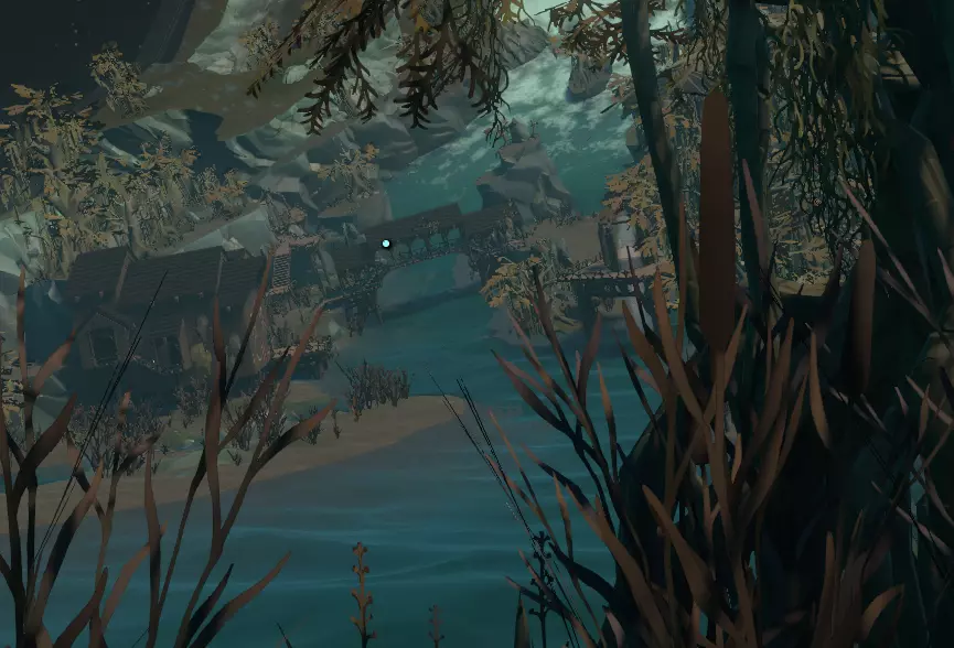 拿起卷轴,门就会关闭。现在我们该怎么出去?屋顶上有个洞,用喷气背包飞上去就能出去。再次打开门,把卷轴拿回来。现在我们前往另一边。用喷气背包飞过你最初进入时的那个缺口,沿着小路经过基岩,爬上几级台阶,来到另一扇由阳光/光线激活的门前。打开门,走进去。你可能会认出这个房间,这里是观景屋的顶层!去把卷轴放进播放器,看看那个大秘密到底是什么。最后,你的飞船日志会再次更新。洪水警告!在循环中的某个时刻(是的,不幸的是它仍然存在,呃!)大坝将会决堤。 由于大量漂浮物顺流而下,这迟早会发生,届时河流低地将会被洪水淹没! 显然,这将导致人们无法在那里停留,因为大部分定居点都会被洪流冲走。这还会在上游造成巨大危险,水中会出现带电的悬空电线! 这就是我们要先处理河流低地的原因。 河流低地还有一件极其重要的东西需要寻找,但由于河水暴涨,只有一种方法能拿到它,那就是——你猜对了,重新开始循环! 神器 神器当然是隐藏着的。要找到它,我们必须进入一座完全被致命幽灵物质包围的房子。不过,也不全是这样。该神器实际上是河流低地的一部分,你可以在抵达牵引光束建筑之前找到它。
