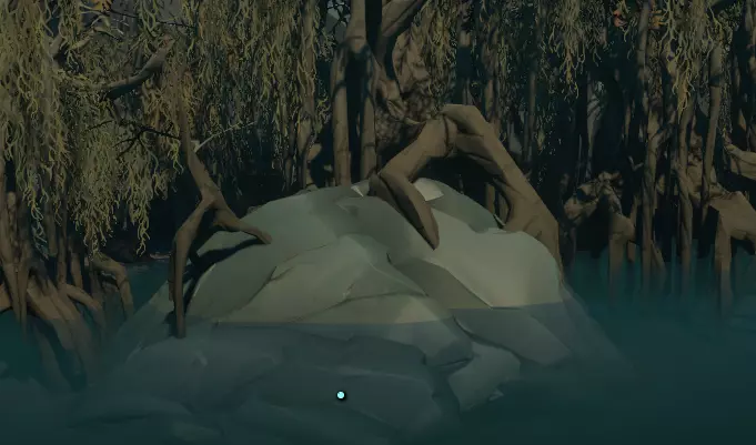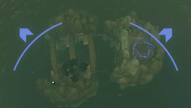 如果你快速穿过溪流到达小岛,就能看得更清楚。现在朝着这个方向前进,到它后面去找一个看起来像下水道格栅的东西,你可以从那里进去。