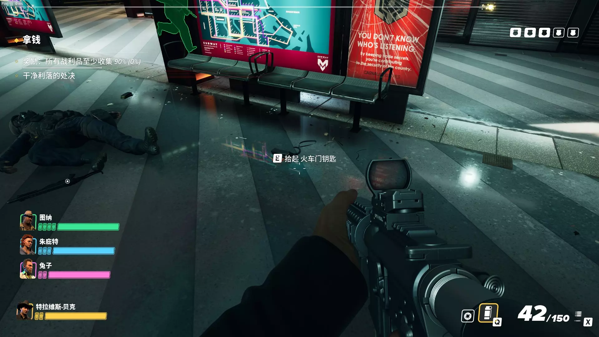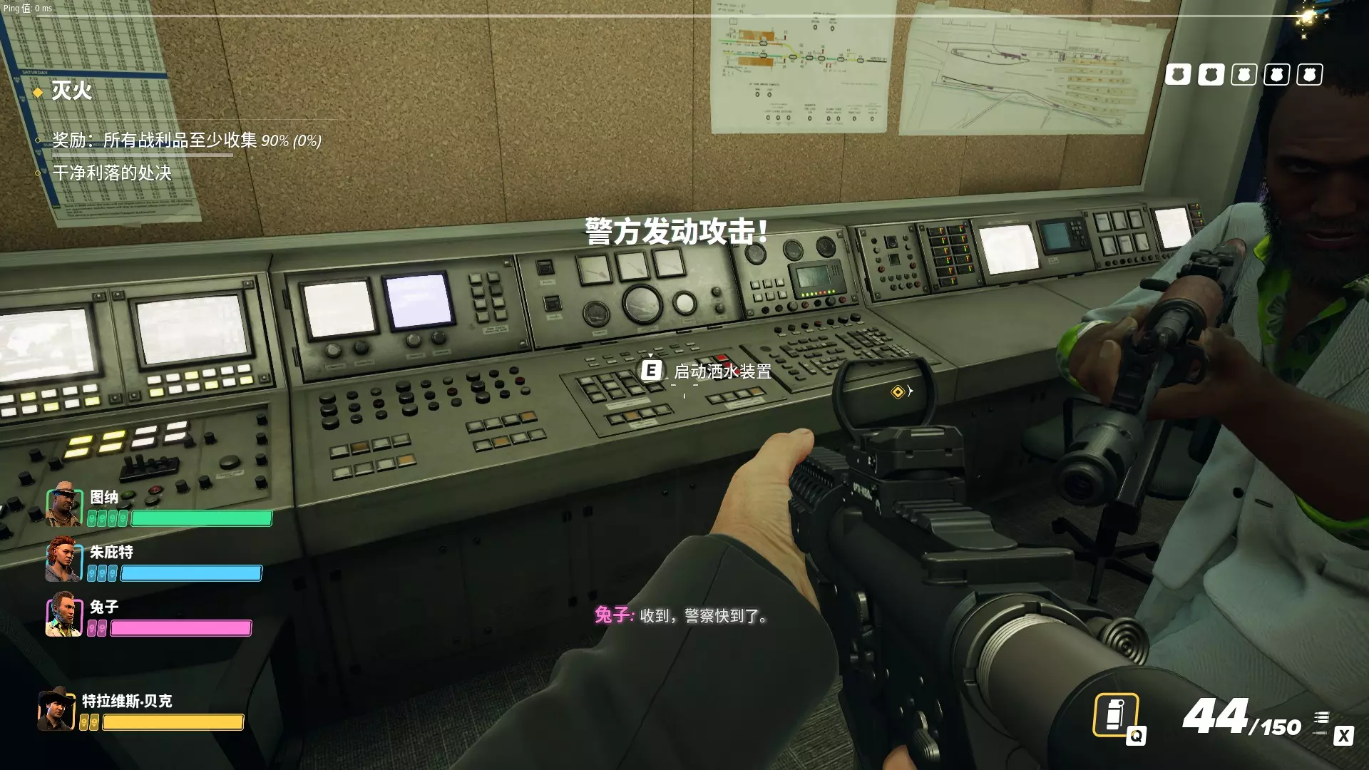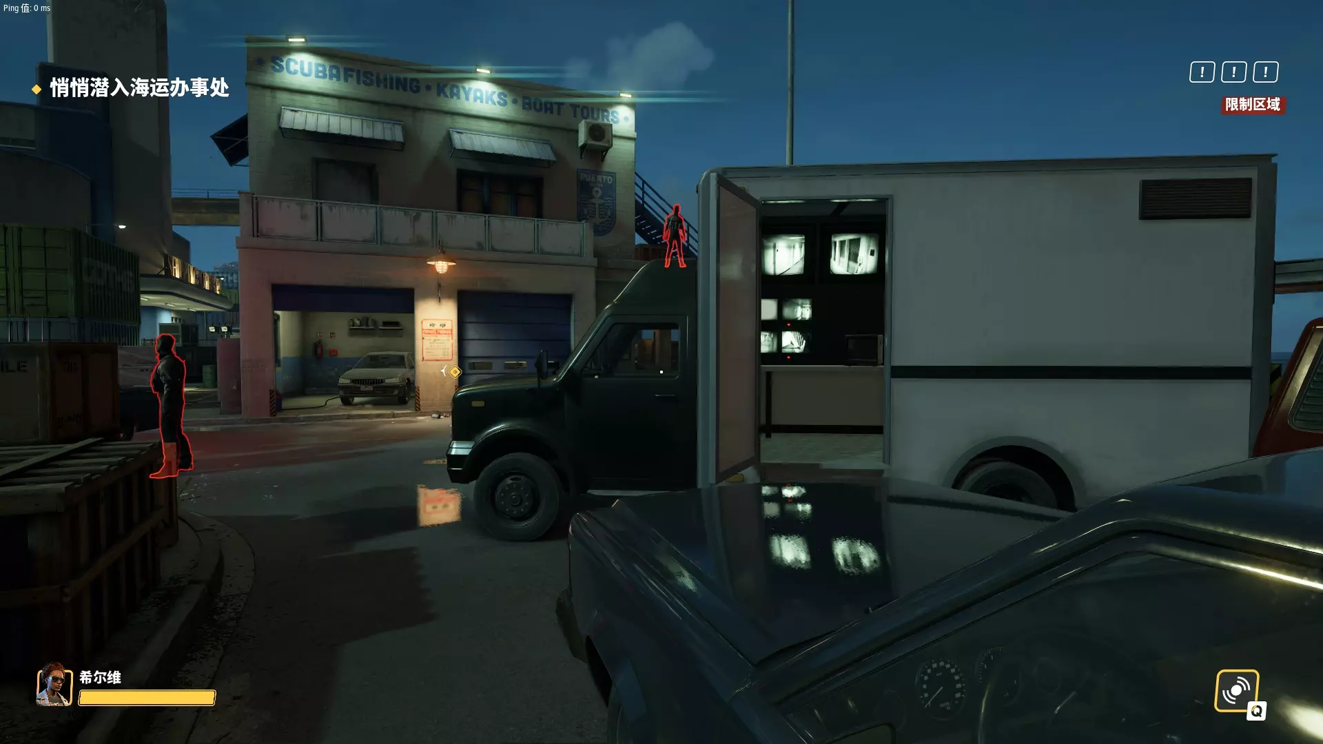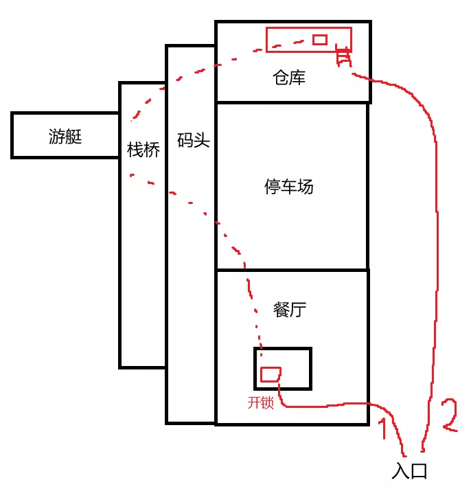 所以别急着进去,先把地图外围都摸一圈再说。好像如果是监控车的话附近会有那种蒙面保安巡逻,标记好之后大概就能知道监控车在什么位置。 进港口大楼之后在电脑上找金库访问码,然后进金库附近的保安室,注意!不要急着解除监控!先看一眼战利品在哪!然后墙上会写一个四位密码,记住它。进入金库外围,这里被激光包围,推荐只在那种上下移动的激光指向上方时蹲着通过。先别急着钻门,会有一个地方能输入刚才的密码,之后会有A1、A2、A3三个开关,启动一个就能直接打开一座金库的门,不过只能使用一次,所以刚才先看战利品在哪就极其有用了。这样就能省下大量时间,而且还能应对一些比如八个蒙面保安站一圈保护里面三个站得很松散的警察查案的阴间阵型,因为钻机一响会把全图警卫都吸引来,这时候用这个开关直接开门就至关重要了。 然后就是进金库把东西打包然后小心地带出来,建议直接运到室外再让机器人队友来拿,有一回我直接让队友拿金库里的袋子结果警报响了。。。 大型劫案:隐秘金库 这个任务的前置线比较多。首先要尝试截获数据软盘,如果失败的话会让维兹越狱或者传递信息。只有在数据软盘任务失败后才会让维兹出马并解锁维兹的角色任务(完成后且通过升级杂志解锁维兹后才会让维兹在多人模式可用),所以做雇佣多人模式所有角色的成就时一定要注意。 当然截获软盘的任务的确很难,我方要进入帮派人员重兵把守的大楼然后打断交易拿到数据盘(交易的人也是队长级别的只能无声武器速杀的精英角色),如果触发战斗时离目标太远的话目标就跑了,所以极大概率会打起来,尽可能在接近目标的位置触发警报然后全力追击目标即可。 隐秘金库任务本身倒不难,找到夜班经理(Night Manager)的牌子,确定夜班经理的名字,去他的电脑上找到隐秘金库位置,然后去金库搜刮即可。潜行完成这些流程也很容易,监控室比较容易进,然后等警卫落单后压制并转移到封闭的房间(比如监控室和各种办公室)后即可,然后长按扔包键开始抢劫并迅速让队友协助控制所有平民。最好把所有平民都标记上并且都转移到隐秘位置,因为有一次一个平民跑到了任务范围外的地方被我追上了,但那里还有俩平民,就只能威吓但又没法去上绑,又不能一直在那看着他们,就只能眼睁睁看着三名平民跑掉然后触发警报了。。。而且可能随时有平民进入银行,如果大家都在金库那边的时候(特别是金库位于比较偏远的位置时)可能注意不到平民并让平民直接逃掉,所以一定要留一个人在门口守着(可以让队员们跟随自己到门口然后按住TAB选所有人待命,如果是三人小队的话可以长按标记打好的战利品包让一个人来协助运包)。上电梯后如果还未触发警报,就是直接在屋顶解决掉零星的警卫然后拉绳运货逃跑。 大型劫案:进出口(可汗游艇) 大家可能比较关心这一关是怎么潜行完成的,因为能完成一个成就。 首先是前置关,可以去救可汗的小弟或者直接花钱从可汗买可卡因,没啥说的。前者不用花钱,但失败的话就只能通过后者得知游艇的位置。 先说说进出口这关正常的流程:接近餐厅,解决餐厅警卫,解决停车场的警卫,解决码头的警卫(码头上锁的话还要从附近的警卫那里拿到钥匙),然后上船,找可卡因。按这个速度的话警探应该会来,碰上之后基本就会触发警报,但好处是解决掉两名警探后调查进度会降。除非你在做潜行成就,哪怕你已经潜行完成了这张图也应该等警探来然后把他们解决掉,毕竟降调查进度的机会还是很宝贵的。 为什么说碰上警探后基本就会触发警报呢?因为警探和黑帮队长一样属于精英单位,不能直接压制,只能击杀,而且尸体也没法装袋。而两位警探后面还跟着两名警察,直接击杀四人的话三次机会就无了,唯一可行的方案就是和队友同步压制普通警察后用消音武器速杀两名警探,当然也要确保其他警察无法看到他们的尸体。这非常难,不过一旦此法成功的话你就有无限的时间慢慢探索游艇了。但游艇可卡因在熟悉地图之后不会特别难找(毕竟你还可以在多人模式中练习),如果做潜行成就的话推荐用下面的速通策略。 速通策略的核心思路就是在警探来之前就找到所有可卡因并撤退,而想要在警探来之前就翻完游艇,就必须尽快抵达游艇之处,上面的餐厅—停车场—码头流程是很慢的。好在,地图中有一处捷径可以直达游艇附近的栈桥处,而捷径入口有两种可能性: