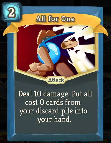 “万众一心”是这套卡组的收益点之一。除了能让你重新购买所有零费卡牌外,配合“超频”这类抽卡卡牌以及“涡轮”这类能量生成卡牌,你可以无限循环使用“万众一心”。如前所述,即使没有任何“刮擦”卡牌,它也能为卡组提供能量。