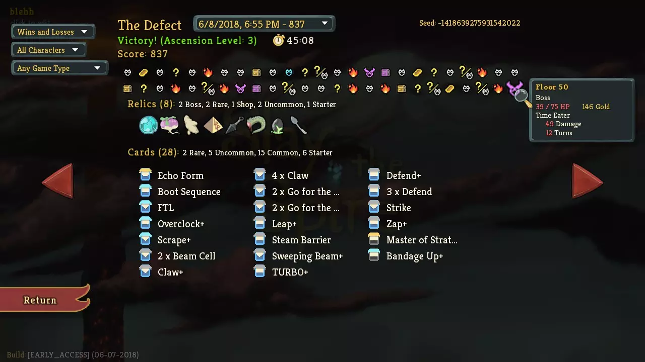 如果你能获得足够高浓度的优质防御卡牌,并移除牌组中大部分无用卡牌,【缺陷】职业就能构建出强大的龟缩流策略,依靠在冒险途中随机获得的各种卡牌来取胜。防御型牌组是最安全的牌组,但如果没有获得具有协同效应的卡牌,其输出能力可能会不足。