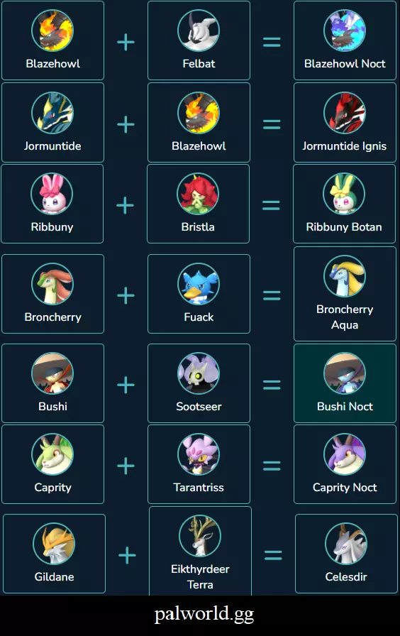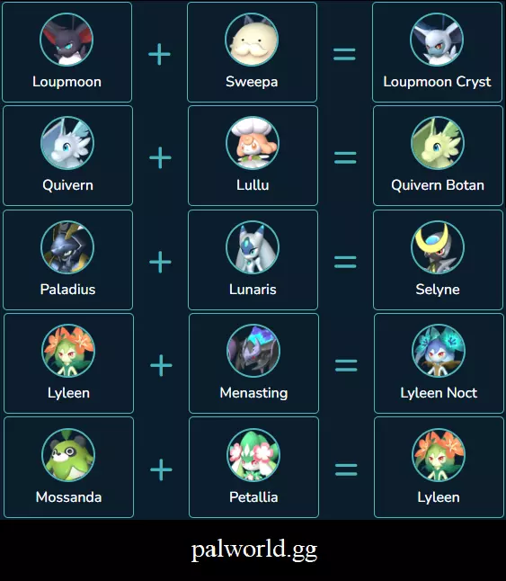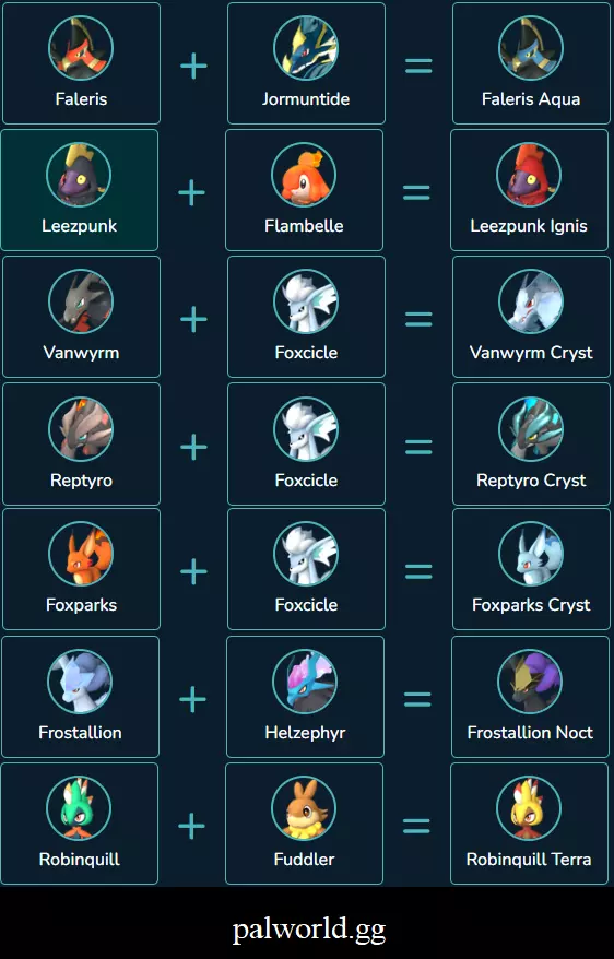 这是一份我会时不时更新的简易指南,主要是添加一些我在游戏中或其他地方发现的组合,方便查阅。 如果你发现任何错误,请告诉我,我会进行修正。 其他指南 这是我找到的另一份包含繁殖技巧的指南,更像是一份正式的指南,而我的更像是一个方便快速查阅的组合列表。 幻兽帕鲁繁殖计算器 我最近发现了这个网站,并开始寻找不错的组合。 我现在有点忙,所以可能暂时不会更新本指南。