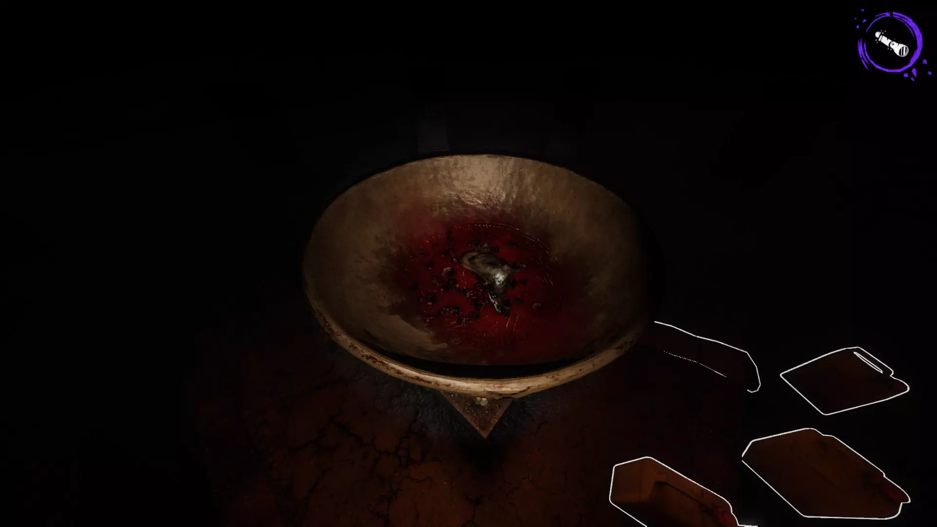 你需要进入房子收集油桶,并将其带到后院的祭坛,需收集满10个油桶。确保10个油桶都已放置在祭坛后,拿着草去抓羊。看到羊后,将草丢在地上,羊会慢慢过来吃草,当它低头吃草时就能抓住它。然后把羊放进祭坛的锅里,长按E键倒油,这样就完成一只羊的处理了。
