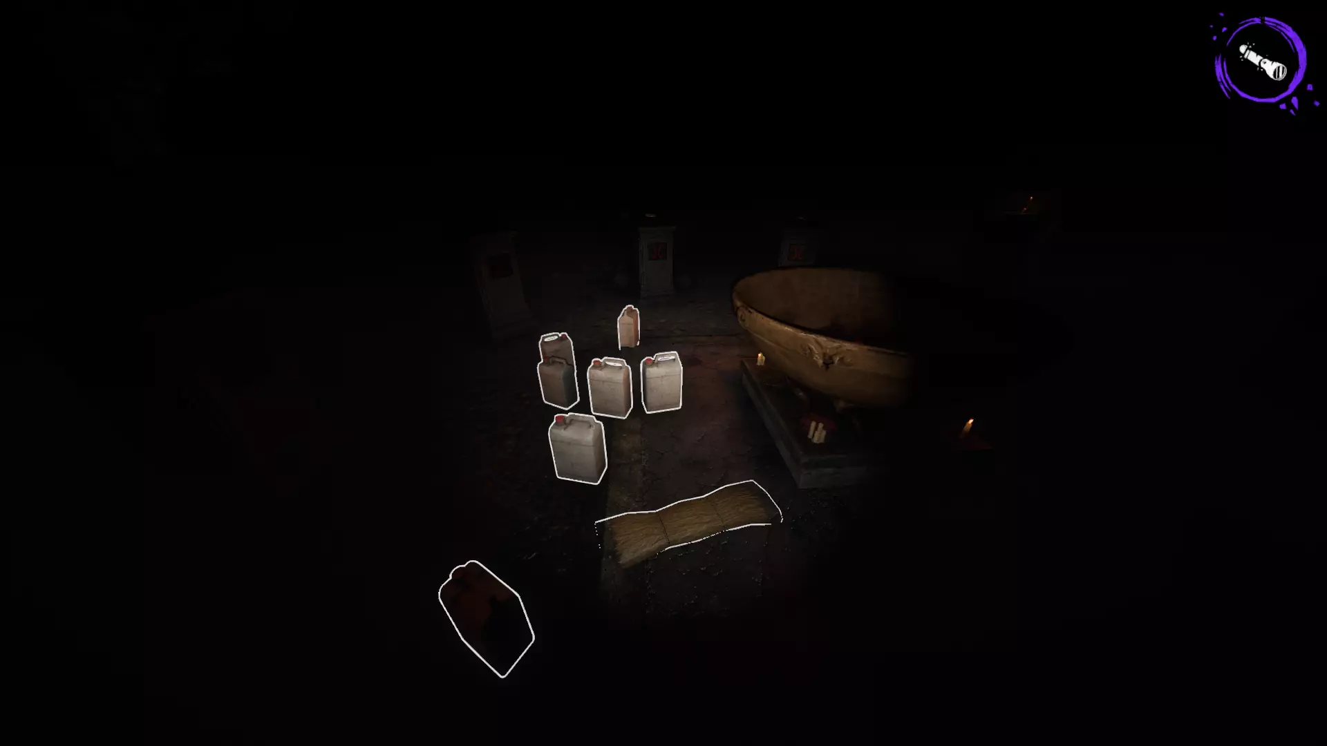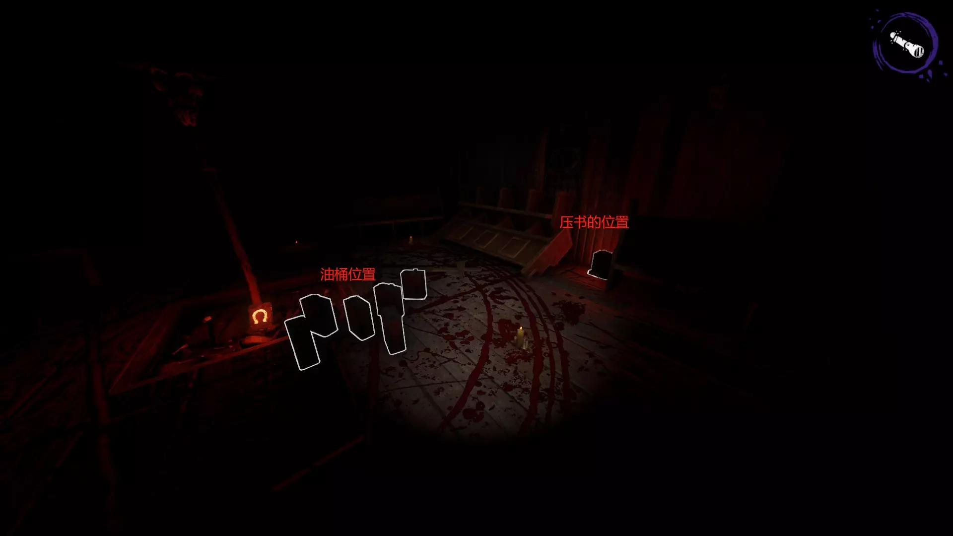 你需要携带10个油桶前往教堂。除教堂外,每个房间内都有一个法阵,你要收集火柴并放置在法阵上,每个法阵只需放置一盒火柴。获取钥匙后打开盒子。若法阵未点亮,将书放在法阵上等待后续附魔;若法阵已点亮,则表示可以进行附魔。使用火柴点燃法阵上的三根蜡烛,手持书本对着法阵长按E键即可完成附魔。之后,携带附魔好的书本前往教堂准备焚烧,或将其放在教堂内并用油桶压住,防止小鬼偷走书本。通常在对局中,会有玩家将油桶放置在某个角落,这是在提示你将书本放在那里,这样小鬼就无法拿走了。