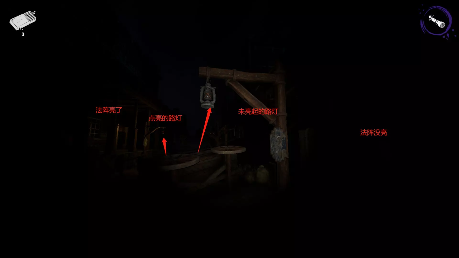 这图的小鬼是鬼魂,会穿墙,被紫外线照到会闪到一边躲避,需要注意。它也会偷书,且只偷附魔好的书。 开鬼后,全图随机刷新钥匙,随机点亮4个地方的法阵,后续每烧掉一本书,会再点亮一个法阵。 房间内的法阵是否点亮可通过门前的路灯判断:如果门前的灯亮着,代表该房间的法阵已点亮;对法阵进行附魔后,灯也会随之熄灭。
