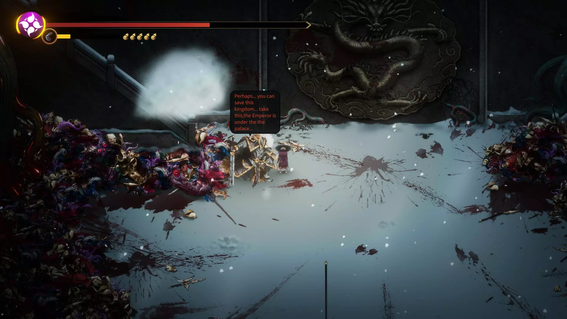 饶过他并照常继续游戏。击败最终 Boss 后,选择【摧毁王座】。如果你之前饶过秦武,会出现另一个提示,此时选择【血】选项。