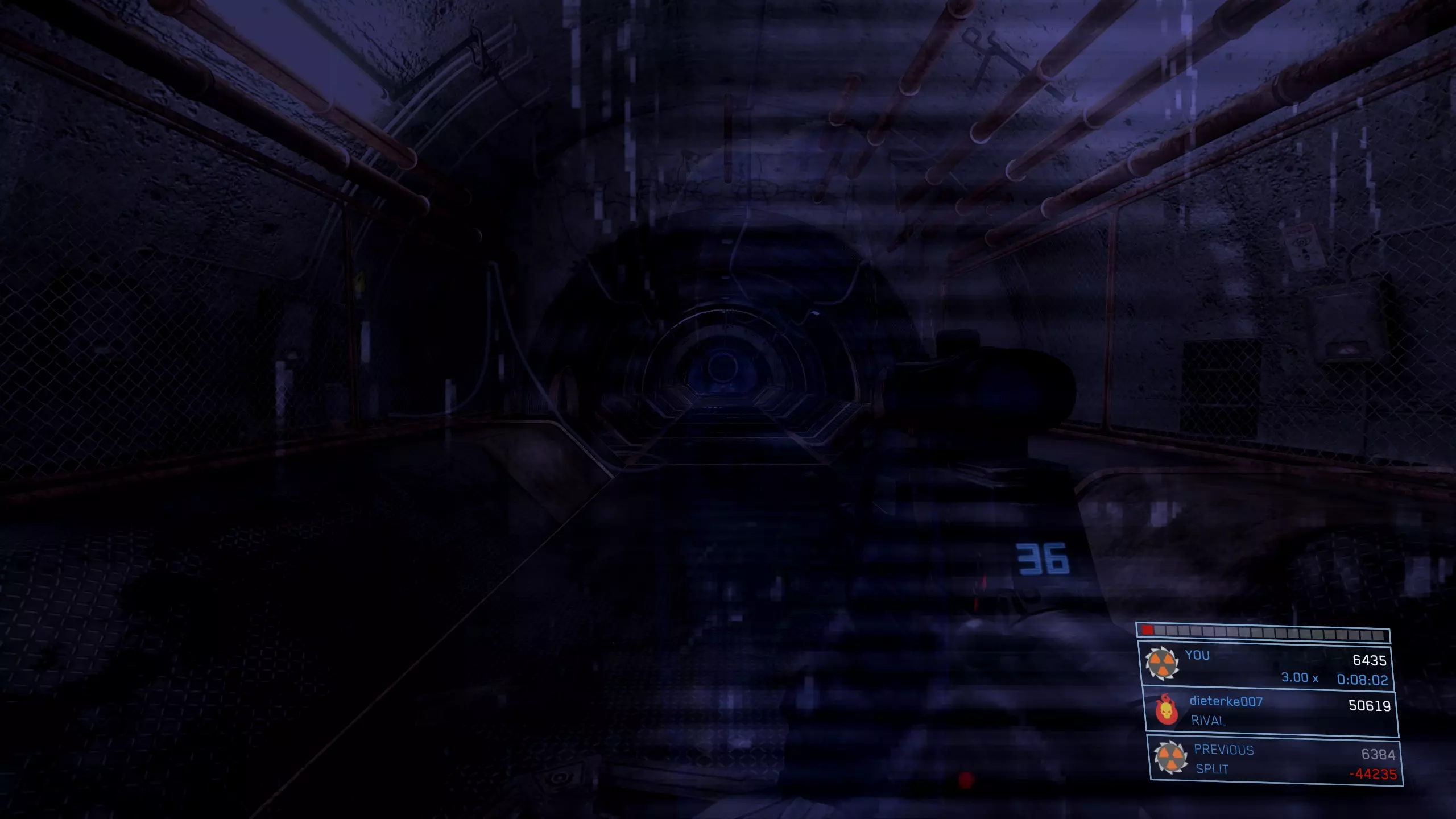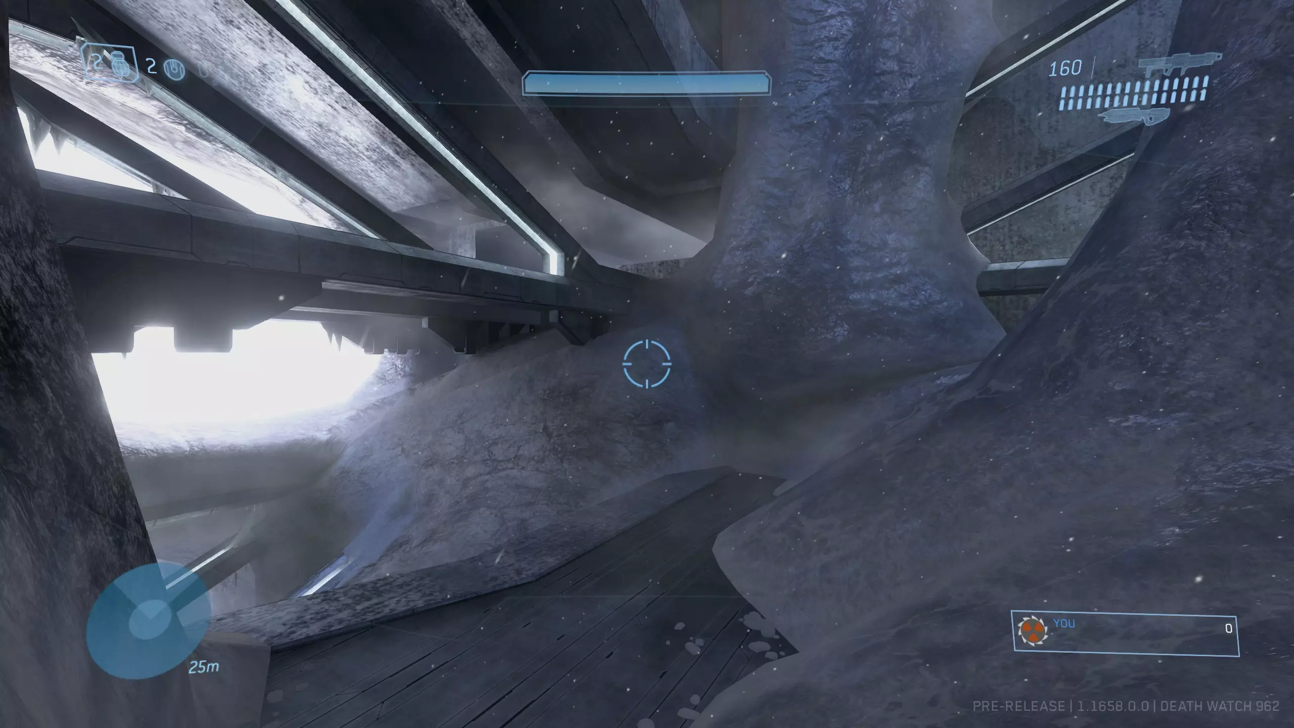 终端机 #8 难度要求:任意 位置:从关卡起点向前穿过雪地,直到遇到有几根结构横梁从一面墙延伸到另一面墙的区域。此时(在穿过任何横梁之前),你会看到一块金属地板。沿着地板向右走,穿过冰层上的一个小缺口向上,然后沿着这条路继续走。你会发现一根横梁穿过冰层的裂缝。沿着这根横梁进入一个门口。进入后左转,终端机应该就在视野中。