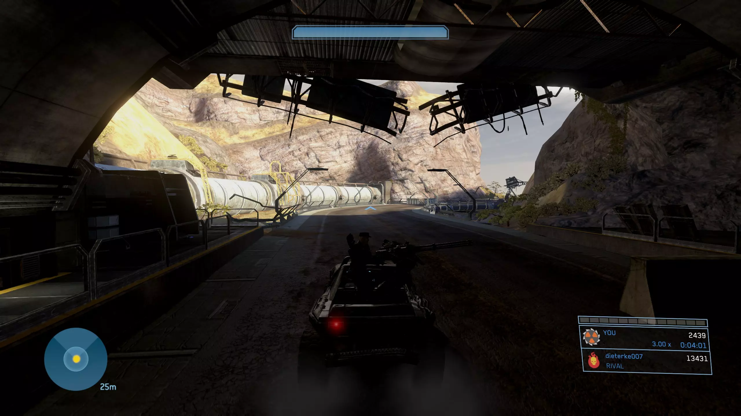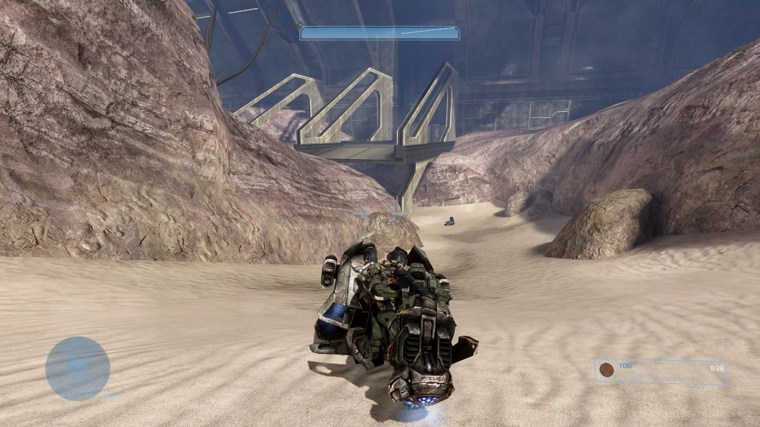终端机 #2 难度要求:任意 位置:前往沙漠区域,征用载具。你需要完成该关卡的大部分内容,击败防空幽灵后获得坦克,然后驾驶坦克返回建筑的主门。 进入建筑让坦克通过能量桥时,在桥的控制台正后方会有一个终端机。你必须先激活桥梁才能访问此终端机。