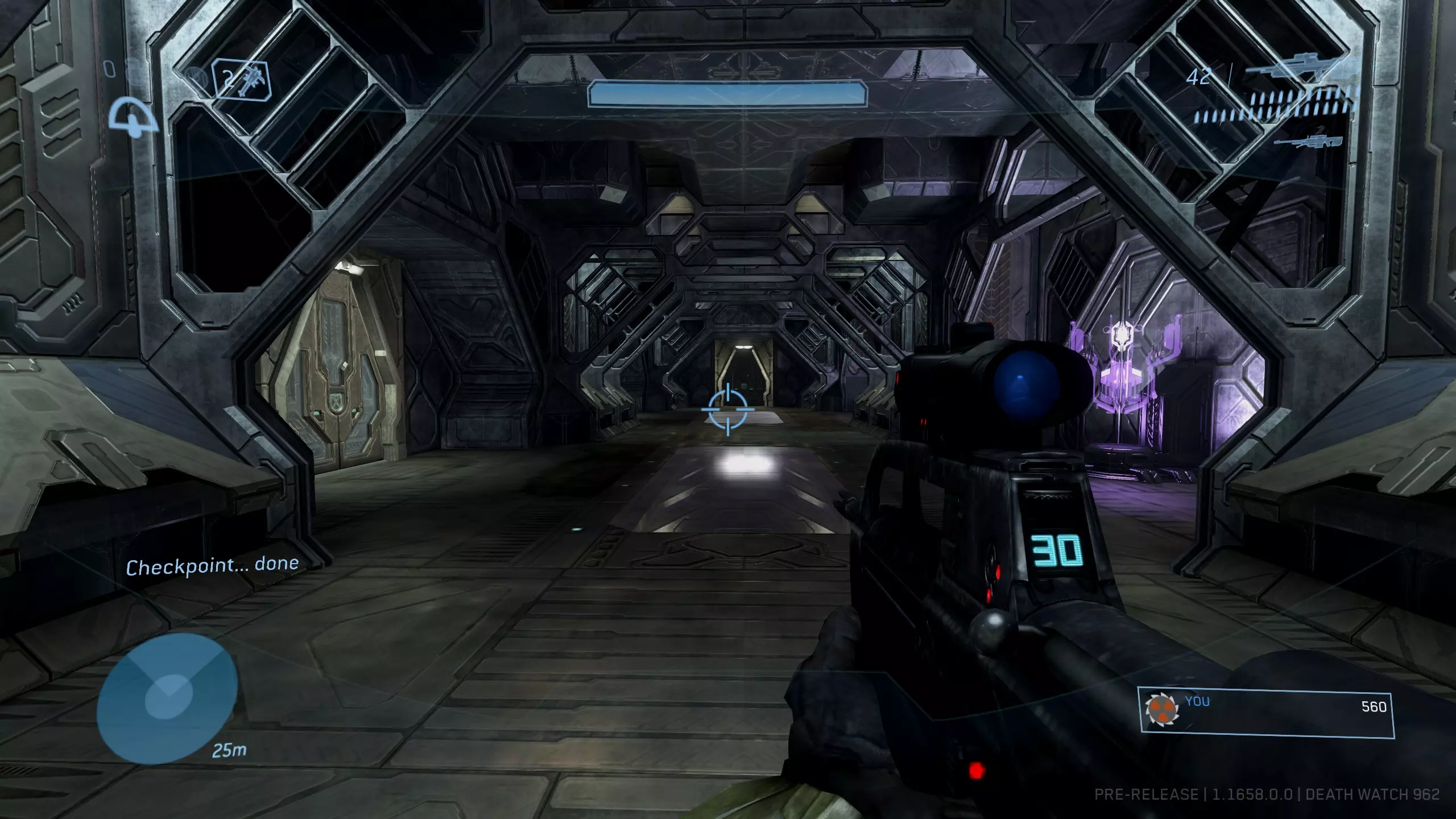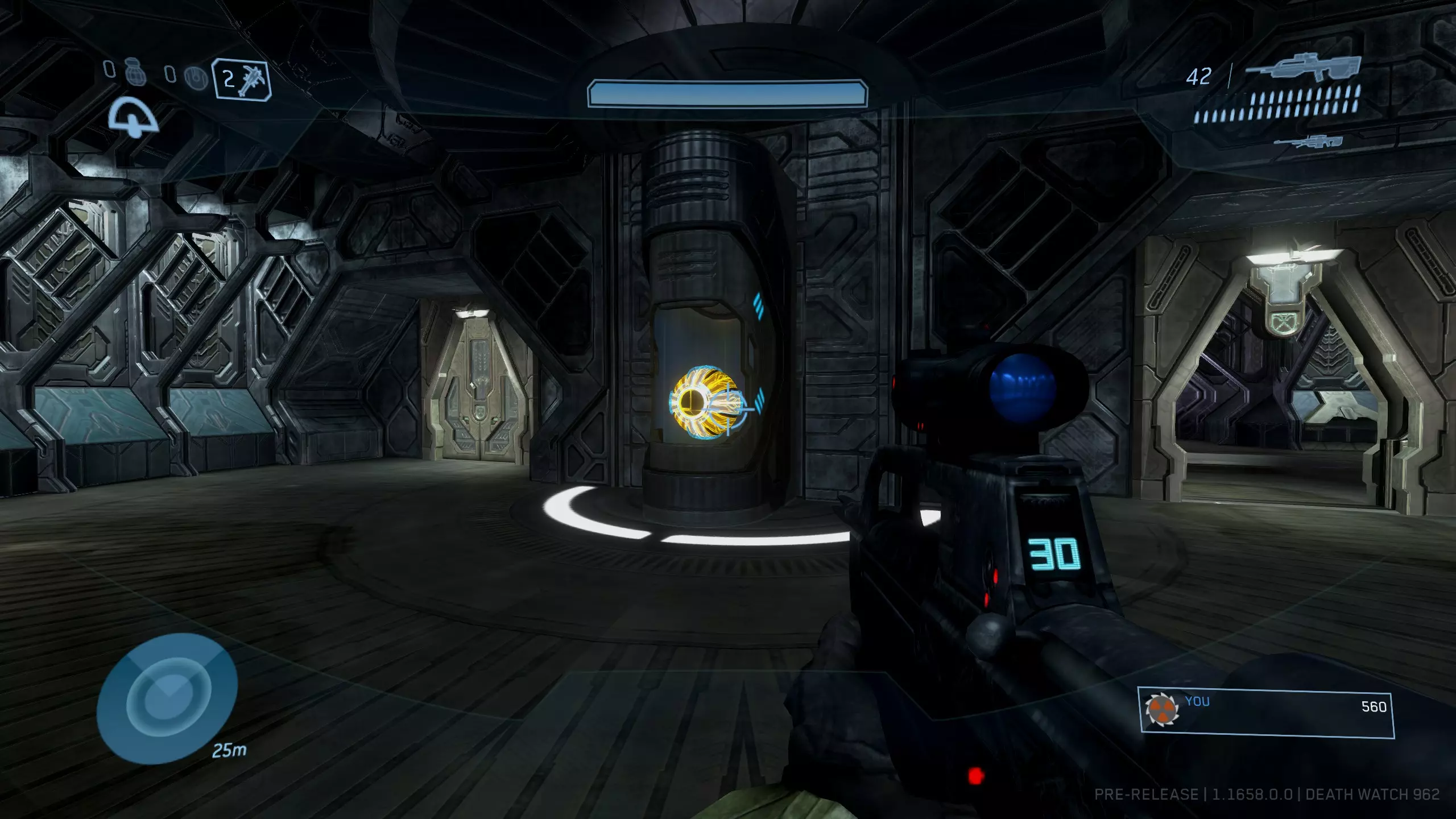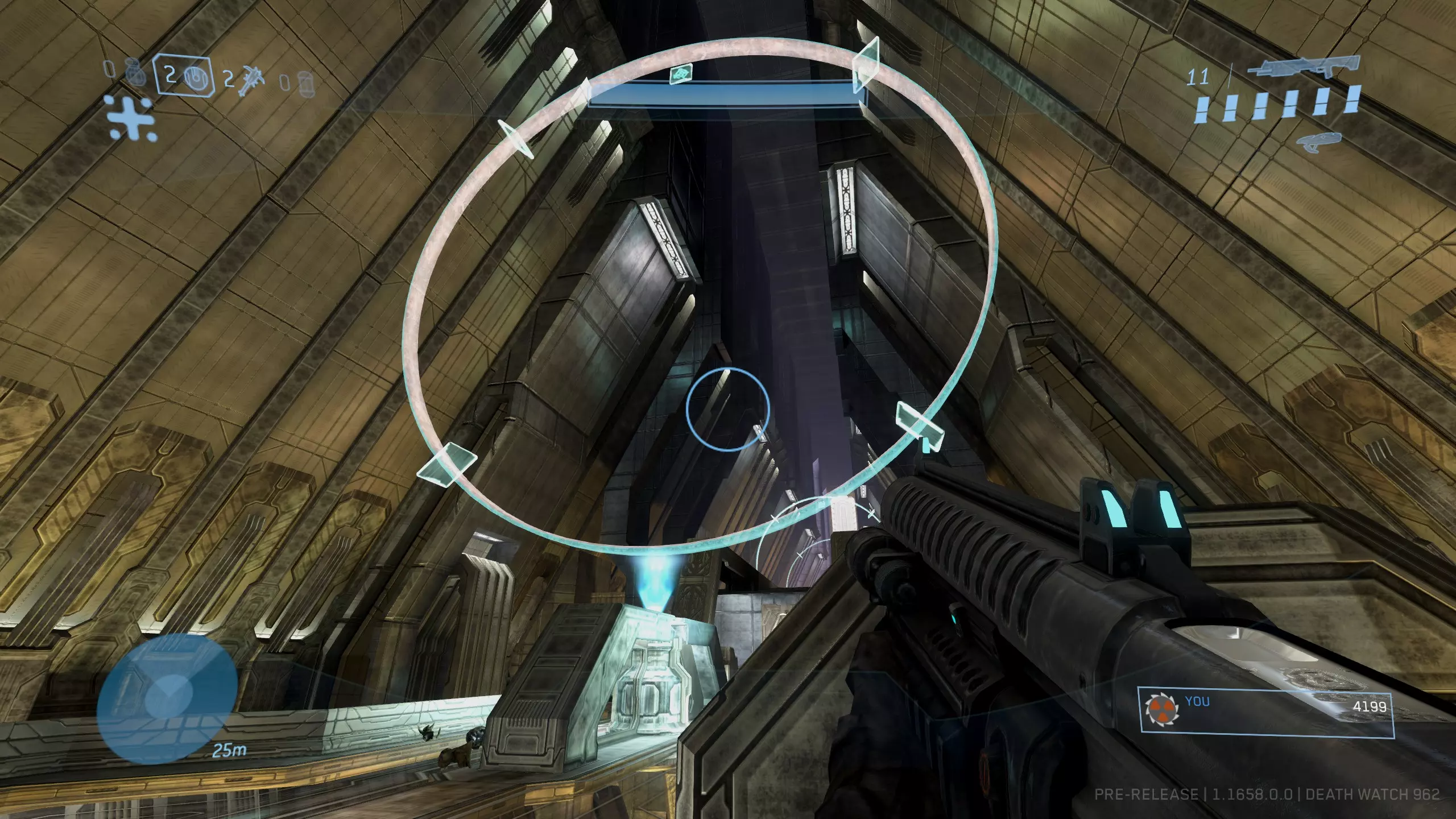 如果操作成功,光环会闪烁。回到有真相先知的平台,你应该能看到骷髅头位于光桥的尽头。如果没有出现,请重试并确保完全穿过光环!需要注意的是,你应该面向真相先知和神庙、背向电梯的方向穿过光环。不过这一点似乎并不绝对。