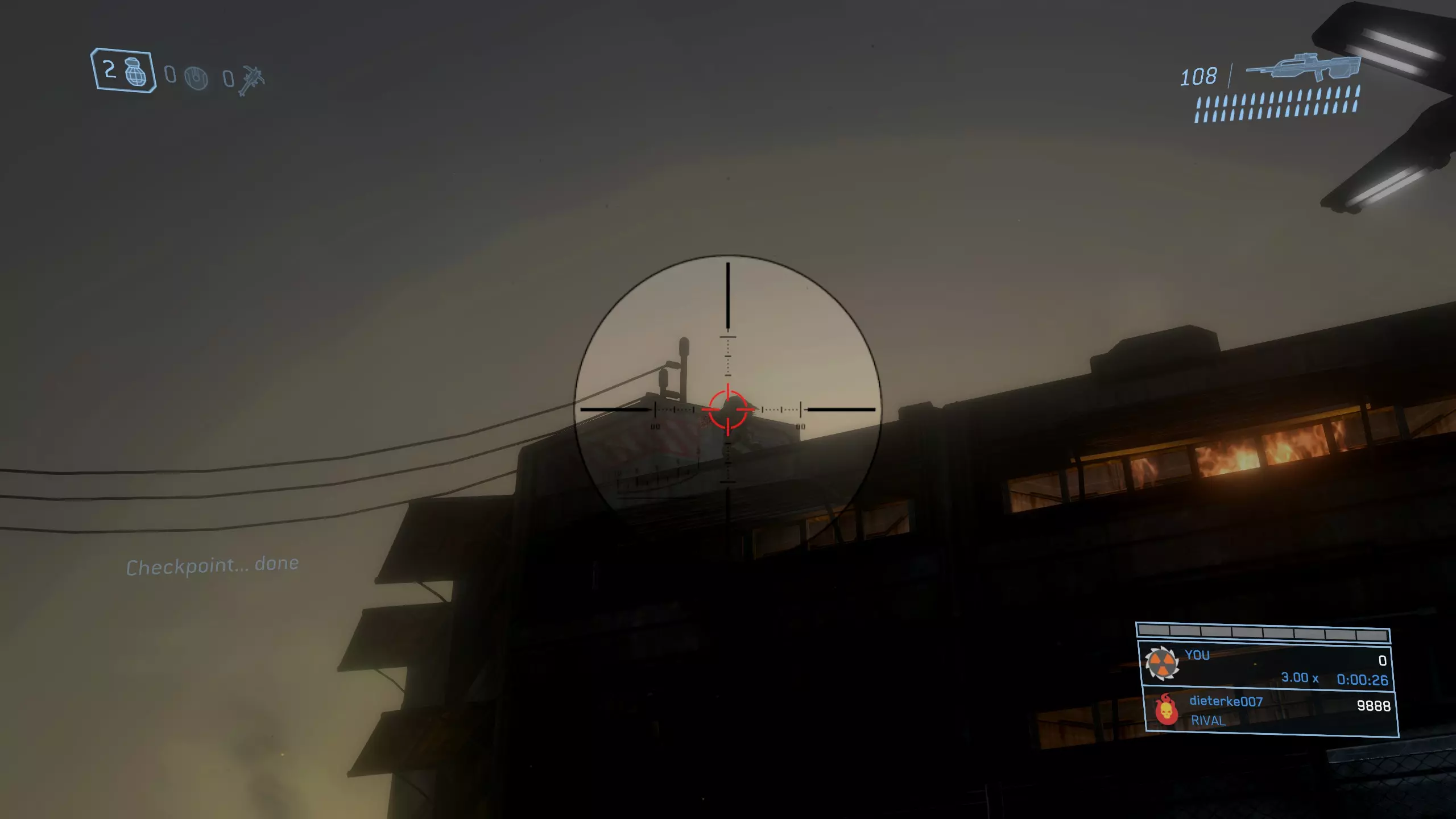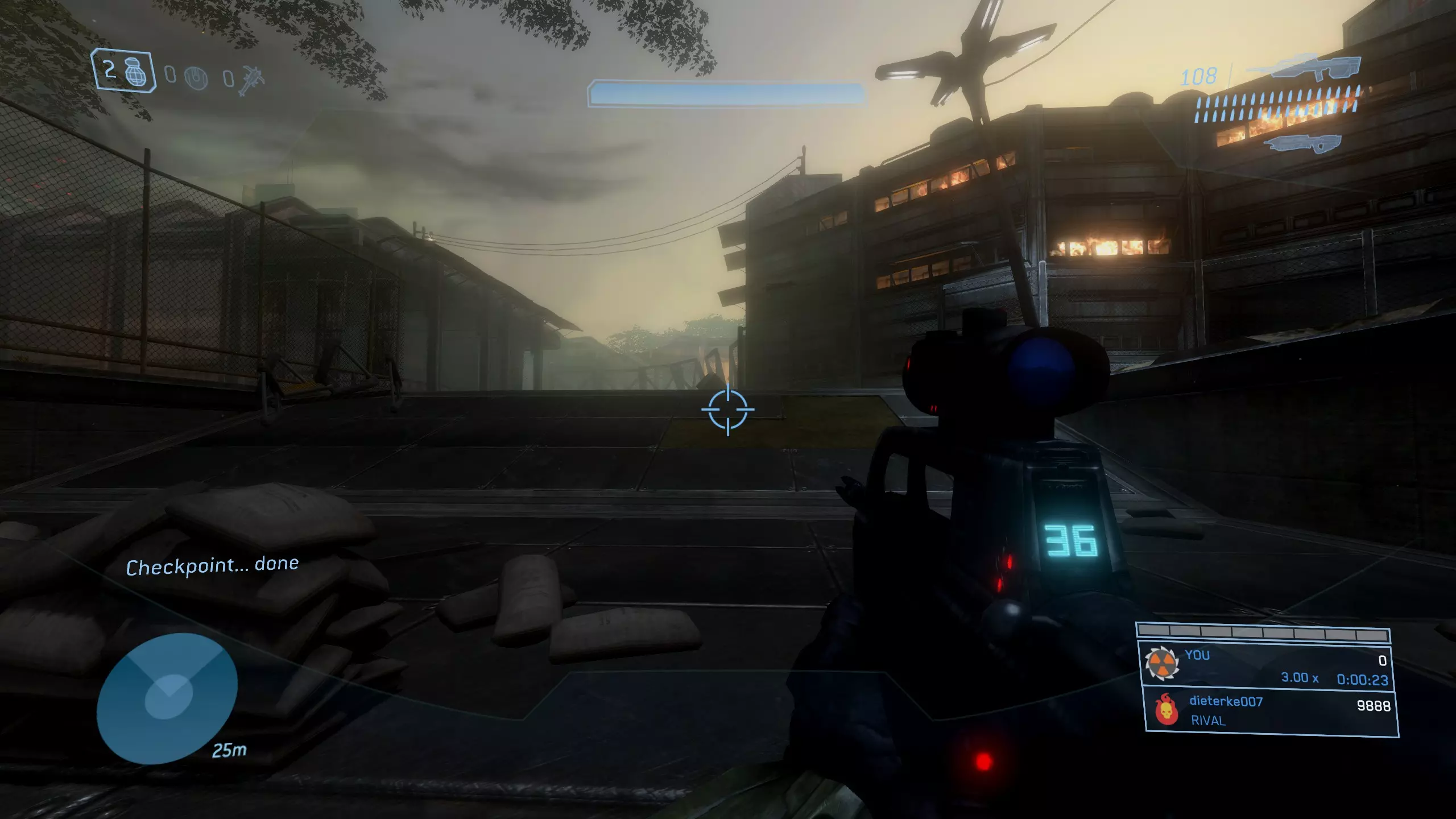 闸门 颅骨 #7:迷雾 难度要求:普通及以上 效果:运动传感器失效 位置:在关卡最开始,从你在前一任务中摧毁的防空炮所在的小山爬下去,进入一个看起来像是被洪水淹没的小型商业区。当你沿着小山往下走时,应该会看到左边有一道围栏,前方右侧有一个更小的防空炮塔,其正后方有一栋建筑。进入该区域后,注意观察这栋建筑的屋顶。此时,你还会听到无线电里有一名陆战队员说:“所有小队,报告情况。”当你朝着建筑移动时,应该会看到一个双足洪魔形态出现,它会从建筑屋顶一路跳起并越过你左侧的围栏。这个敌人实际上携带着【骷髅头】。在它跳跃时瞄准射击,它就会把【骷髅头】掉在地上,你就可以捡起来了。