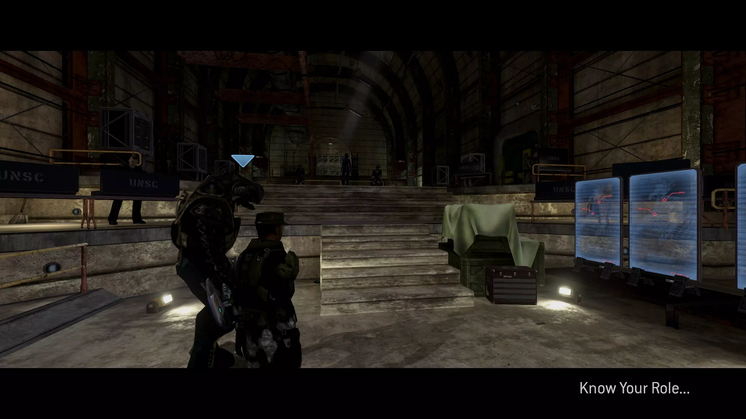 终端#3 难度要求:任意 位置:在关卡中有一部分,你需要走过一条白色墙壁的长廊,在尽头左转继续前进。下一个房间里会有一个咕噜人(Grunt)游荡,还有许多堆叠的等离子电池。你一进入这个房间,就到你所站的楼梯/平台下方。下方有一扇门,里面藏着这个终端。要进入此终端,你可以在B集合点(Rally Point Bravo)重生,这样会把你带到有沉睡咕噜人的房间,就在有咕噜人和等离子电池的房间之前。