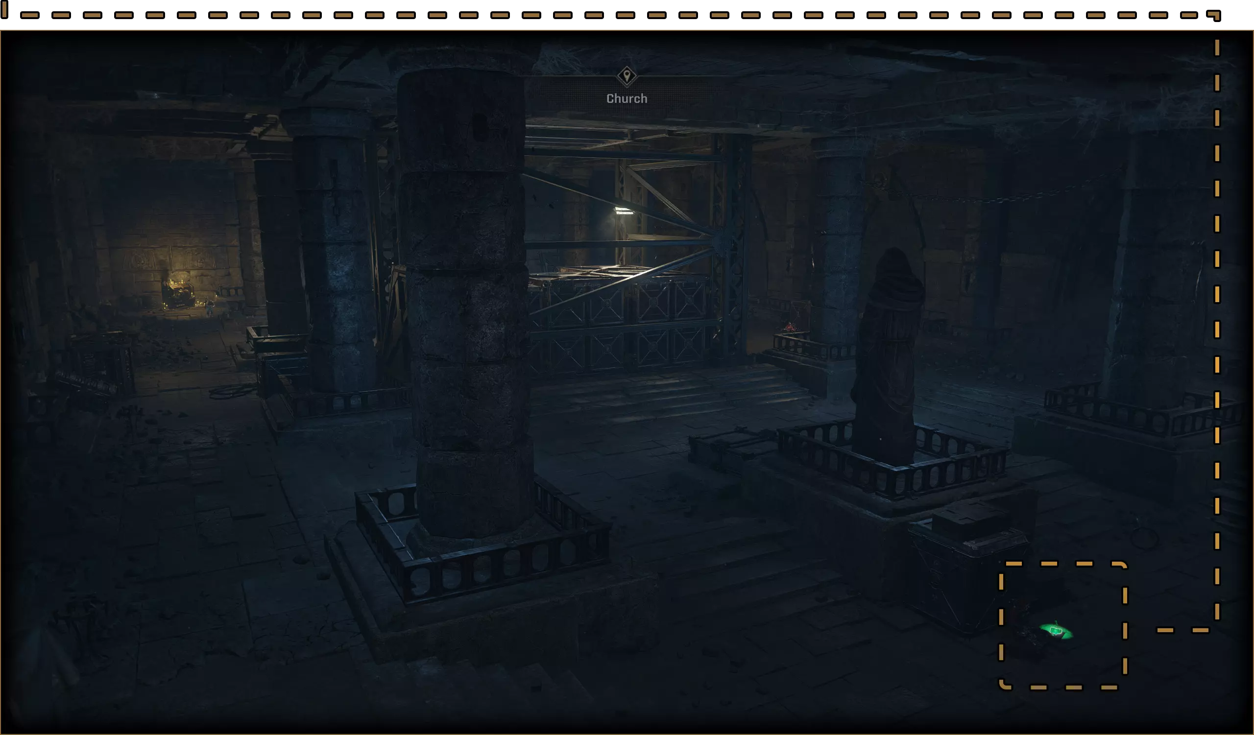 在剧情中你需要下去的礼拜堂拐角处。