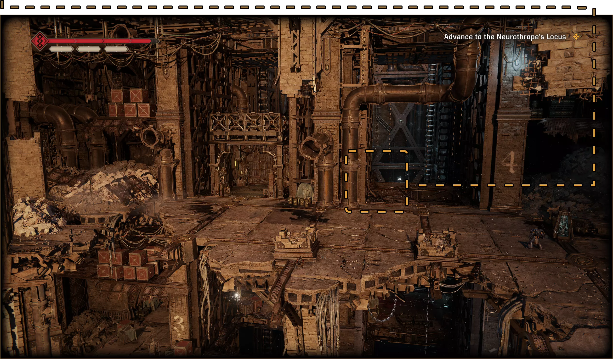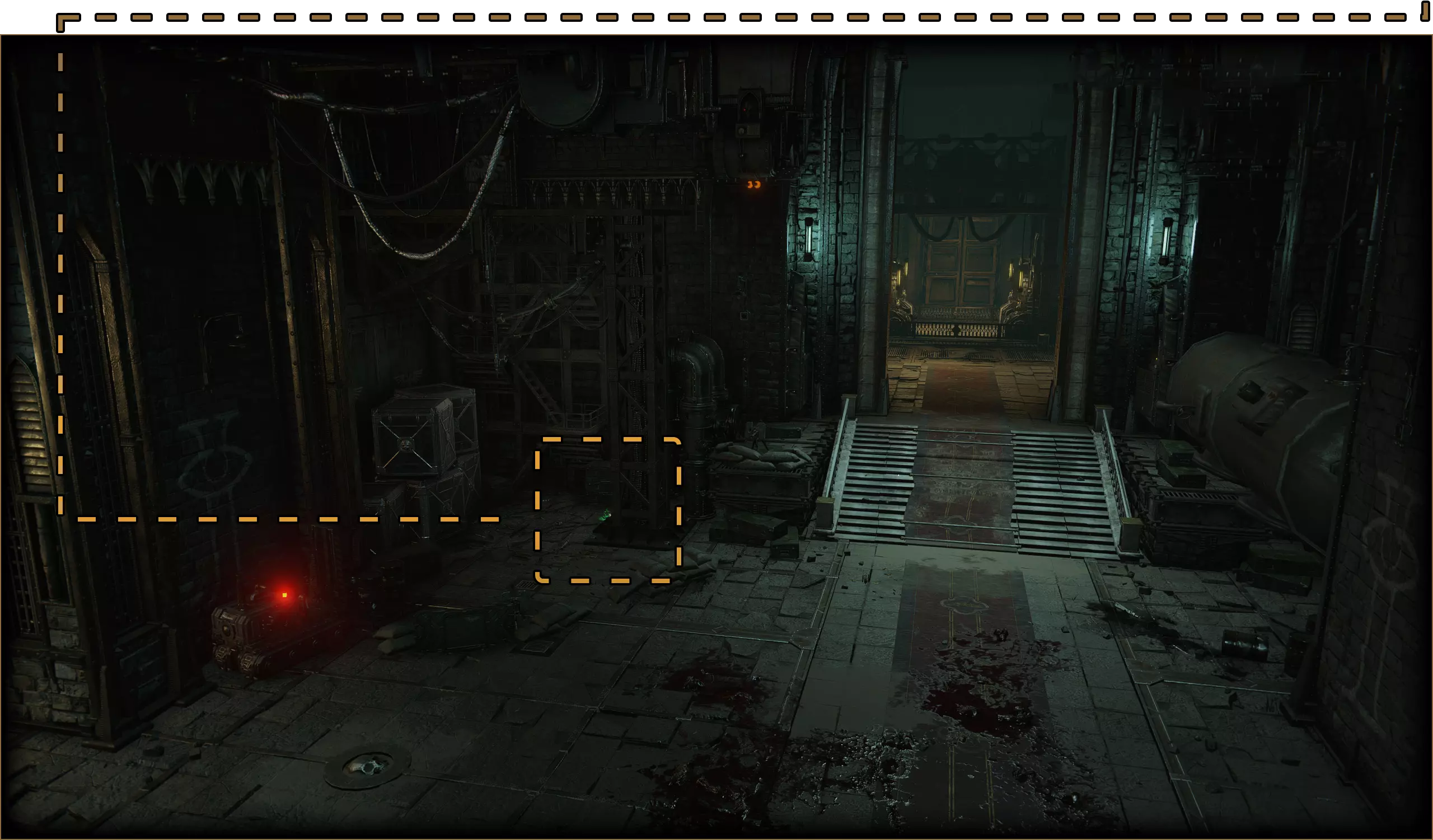 在某个岔路口,你本需要向下走,但请改为走上楼梯到达顶部,然后进入左侧的房间,那里有一个可收集物品。