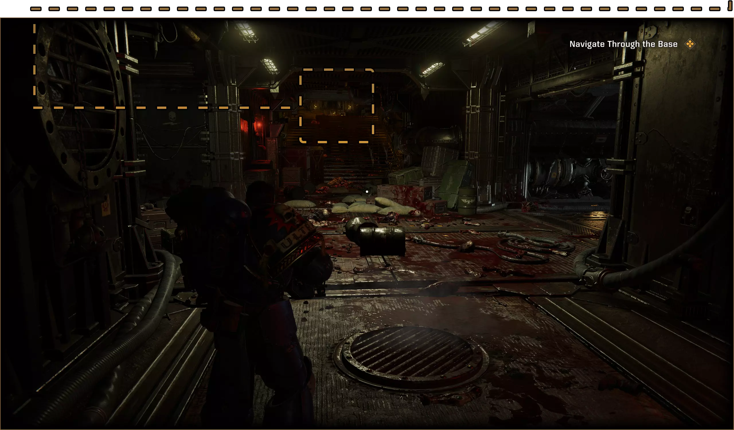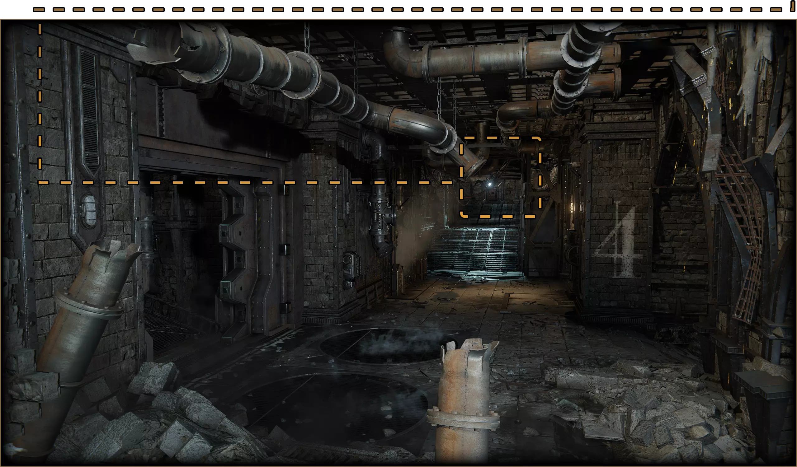 在3区和4区之间的气闸室。第二扇门的顶部有一块损坏的地板。