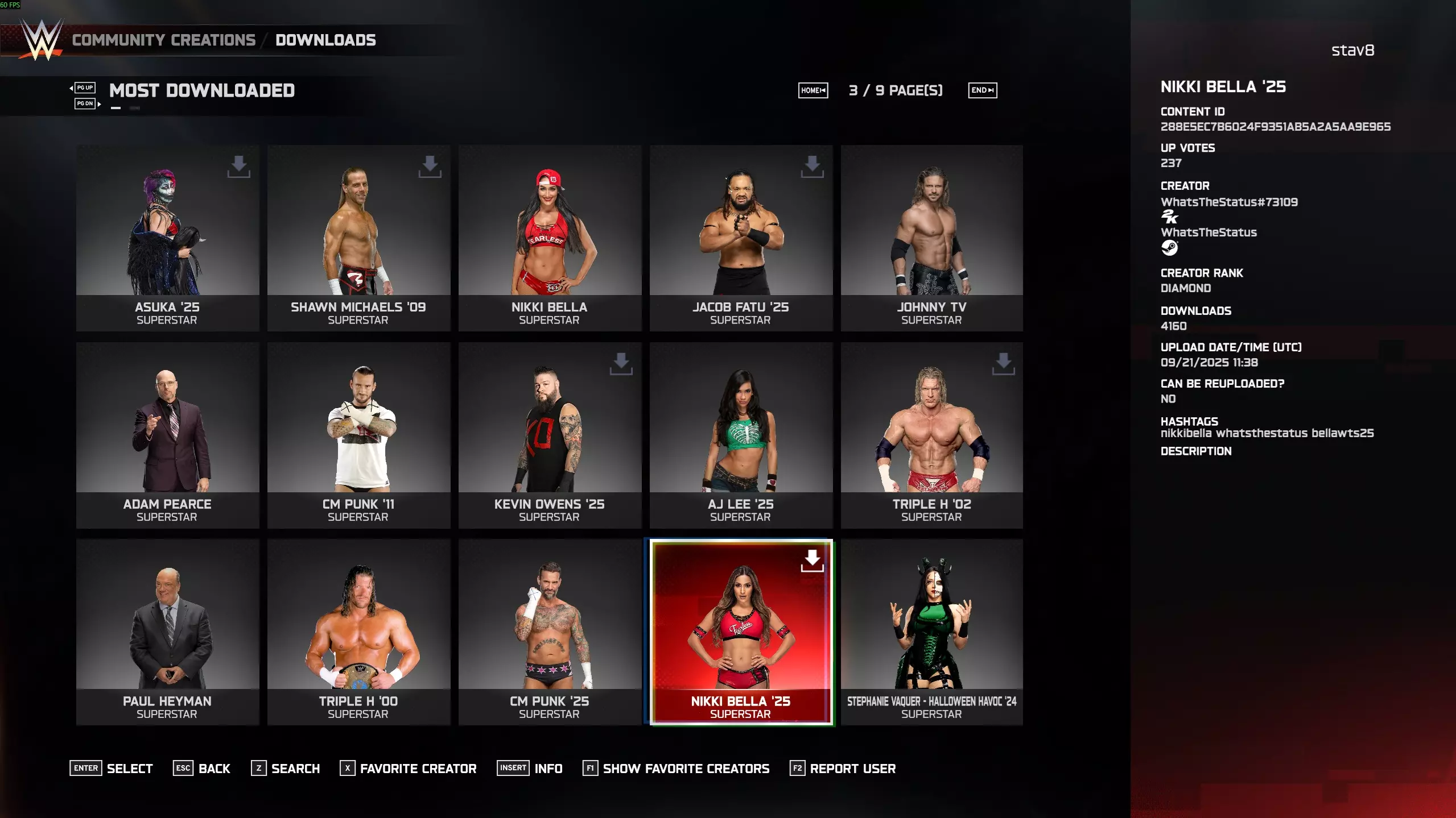 《WWE 2K25》PC版贝拉和高柏解锁指南。这些版本包含解说、入场音乐和擂台播报,但不包含电子显示屏或横幅影片。不过考虑到它们无法通过其他方式获取,这已经是很不错的取舍了。 获取妮基·贝拉和高柏的方法: 启动游戏,然后进入社区创作。