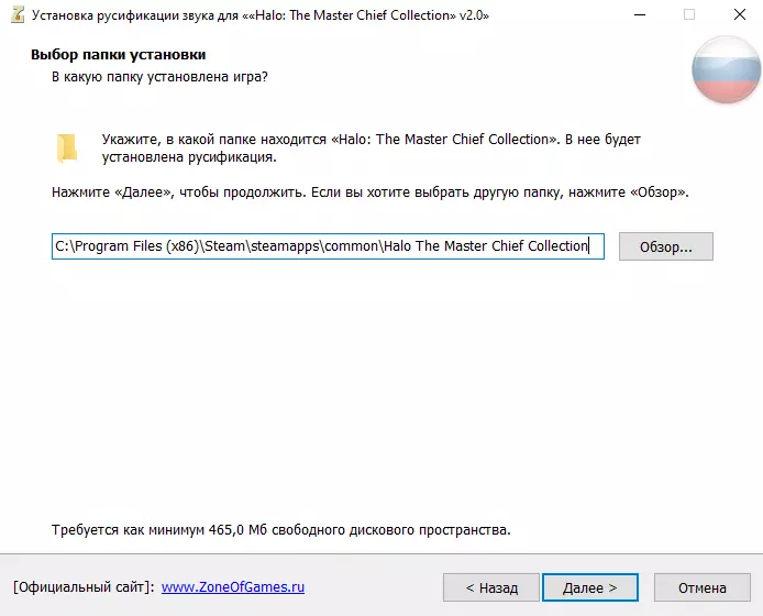 第二个方案(Yandex 磁盘)我想这里不需要给你说明,通过下方链接下载你需要的语音包: RusBox 语音包 Вектор 语音包 City 语音包 第三个方案(Steam 创意工坊)即将推出 Siberian-studio 俄语化补丁安装 安装时你几乎不需要做任何操作。 1. 选择适用于 STEAM 版本或 2003 年经典版本的俄语化补丁版本。有可能,但可能性不大,因为该安装程序会自行查找路径,需要手动选择汉化补丁的安装路径,路径应大致如下: 如果游戏在C盘: C: Program Files (x86) Steam steamapps common 光环:士官长合集 如果游戏不在C盘,例如在D盘: D: .. SteamLibrary steamapps common 光环:士官长合集