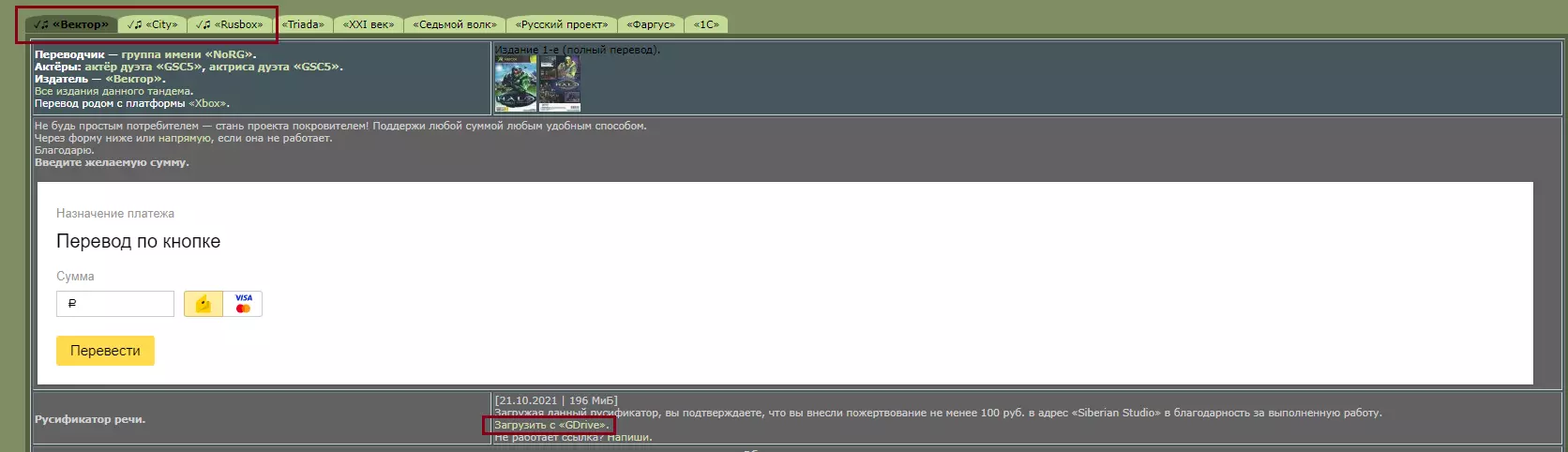 致力于《光环:战斗进化》(Halo 1)的本地化工作(R.G.DualShock 与 FreedomHellVOICE) R.G.DualShock FreedomHellVOICE 《光环2》(ZoG Forum Team) VincentDoC Солдатов Александр Stas20()7 'SqL' BbloCker 《光环3》(ОРЕОЛ、spider91 及 Halo Universe) ОРЕОЛ spider91 Halo Universe 版本 1.16(2022年8月7日) 修正《光环:战斗进化》的路径 《光环2:周年纪念版》完整语音本地化 Mechanics VoiceOver(R.G. MVO) 可能会参与《光环2》的配音工作 他们在达成《光环3》众筹的首个主要目标时发布了相关信息Designer Team团队不反对进行完整的配音,相关信息曾在论坛发布。Mechanics VoiceOver (R.G. MVO)制作的《光环3》完整俄语配音已达成118000卢布(目标为140000卢布),第一个目标已成功完成。Mechanics VoiceOver(R.G. MVO)发起了新一轮众筹。新一轮众筹的目标是达成首次众筹的第二个目标,为《光环3》制作完整的俄语语音,即战斗台词配音,避免出现突兀的英语台词。此目标的额外之处在于部分成果将用于《光环2:周年纪念版》的配音,同时这也能让他们了解是否要进行《光环2:周年纪念版》的配音工作。Mechanics VoiceOver(R.G. MVO)已宣布此事。 目前情况:他们正在进行翻译和整理工作,配音更新将逐步推出。 截至上次更新:筹款已结束,等待翻译完成。他们成功筹集到22107卢布,目标为21500卢布,太棒了,已筹满全部金额。目前无法通过VK的目标功能来维持项目,但您可以通过讨论区中描述的其他方式提供支持。 信息链接: FreedomHellVOICE:他们为《光环:士官长合集》制作了大部分俄语本地化补丁。 R.G.DualShock(R.G.DShock):曾协助FreedomHellVOICE进行《光环:士官长合集》的俄语本地化工作。