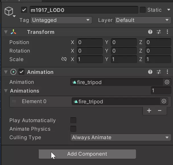 完成所需动作的动画制作后,将添加了动画元素的对象拖放到【连接瞄准】字段(适用于添加开火时拉机柄运动或坦克炮/火炮炮管移动等动画)或【连接装填动画】字段(适用于添加装填时顶盖打开等动画)。