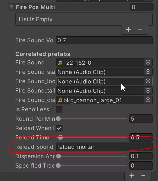 现在,只需返回编辑器,你应该会在那里找到一个新字段。如果不需要任何更改,只需将其留空;如果需要迫击炮专用的装填音效,请输入reload_mortar。