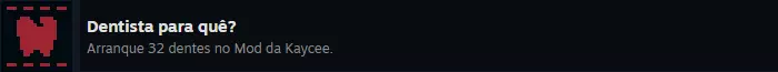 游戏中的一个物品是一把钳子,它能让你拔掉一颗牙齿,对敌人造成1点伤害。要达成这个成就,你需要在凯茜的模组中总共拔掉32颗牙齿。遗憾的是,无法加快计数进度,因为只有在战斗结束后,拔掉的牙齿才会被记录。所以,你只需在挑战过程中拔掉牙齿,久而久之就能达成目标。 你可以在凯茜的模组主菜单的【统计数据】中查看已经拔掉的牙齿数量。 需要说明的是:当我以最高难度完成凯茜的模组时,只拔掉了27颗牙齿,因此需要再玩几次才能拔掉剩下的牙齿。