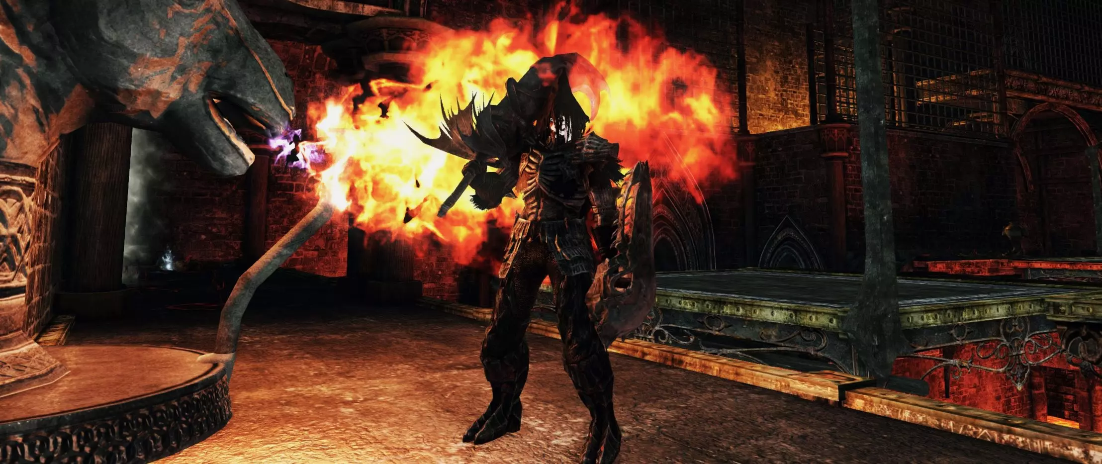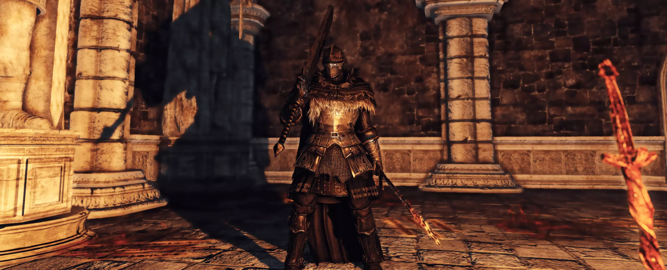 位于阿玛那祭坛的【破碎遗迹】营火附近,在左侧的门后,穿过由龙骑兵守卫的狭窄石桥。此门仅在击败 Vendrick 后开启,且玩家必须处于人类形态才能解锁(使用死者戒指无效)。 • 护手:龙骑兵护手