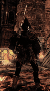 由奥拉夫斯的斯特雷德出售(26100魂),每击败一次暗灵“绝望者”可解锁一件装备(击败4次解锁全套盔甲,再击败2次解锁巨剑和镰刀)。 • 腿部:染血短裙