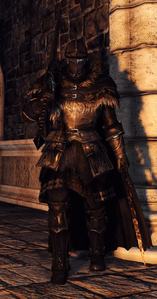 • 在如蜜的莫格林商店花费15000灵魂,然后在没有灵魂时返回。与他对话,他会给你这套装备。 • 盔甲可由圣徒墓地的暗灵罗伊探索者掉落。 • 护手:雕花护手