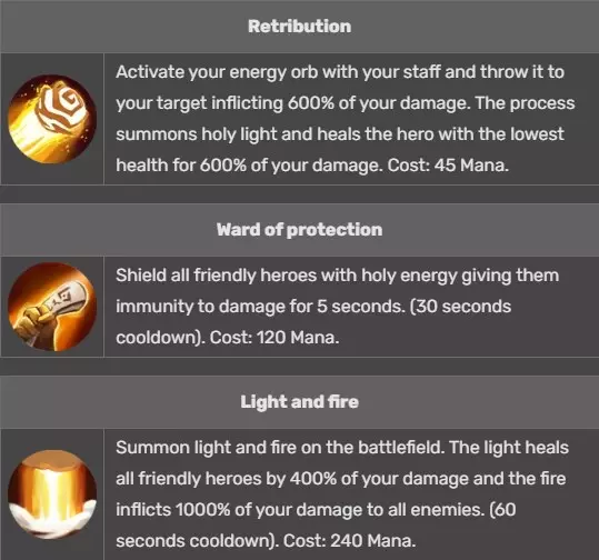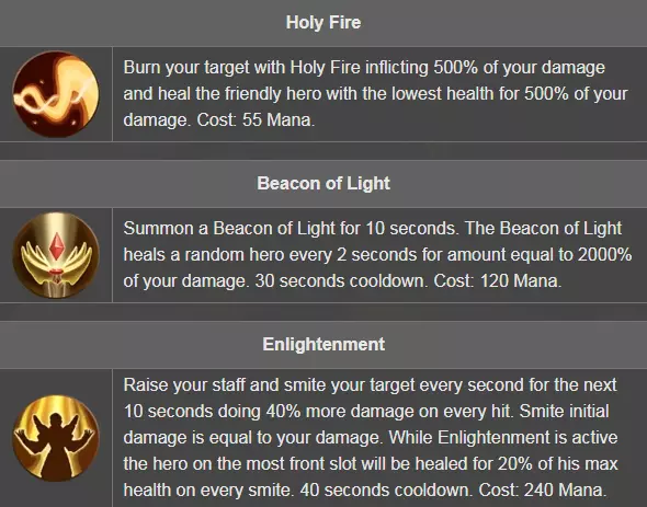 目前游戏中有20位英雄。本指南将介绍所有英雄的基础属性和技能。 信息与图片来源于Firestone Idle RPG Wiki。 本指南使用的资料来源列于底部。 更新记录: 2021年6月15日 19:53(UTC):新增英雄 2021年9月23日 14:32(UTC):新增英雄 2022年2月28日 22:00(UTC):新增英雄 2023年3月2日 09:08(UTC):新增英雄 塔莉娅 - 第3阶段 基础属性