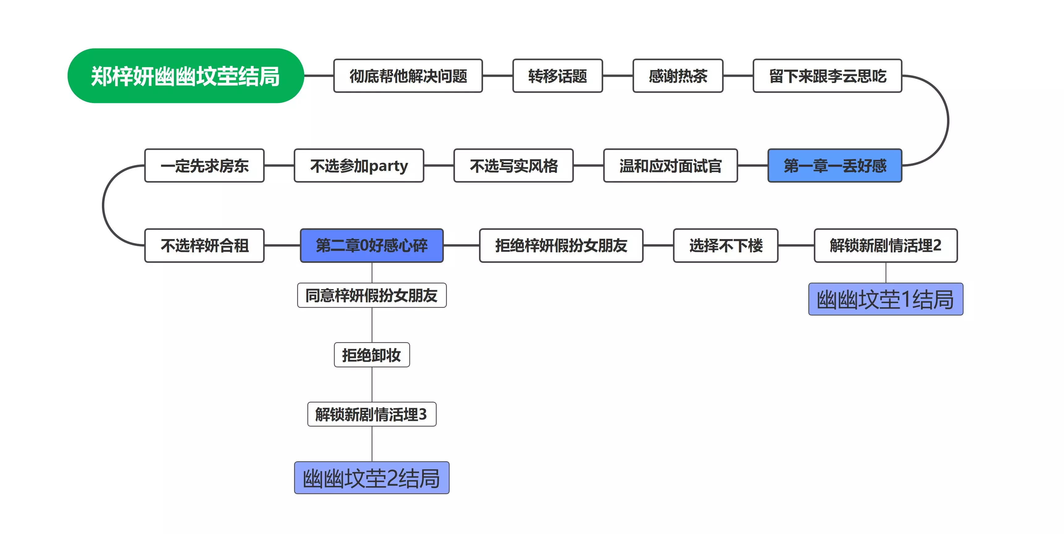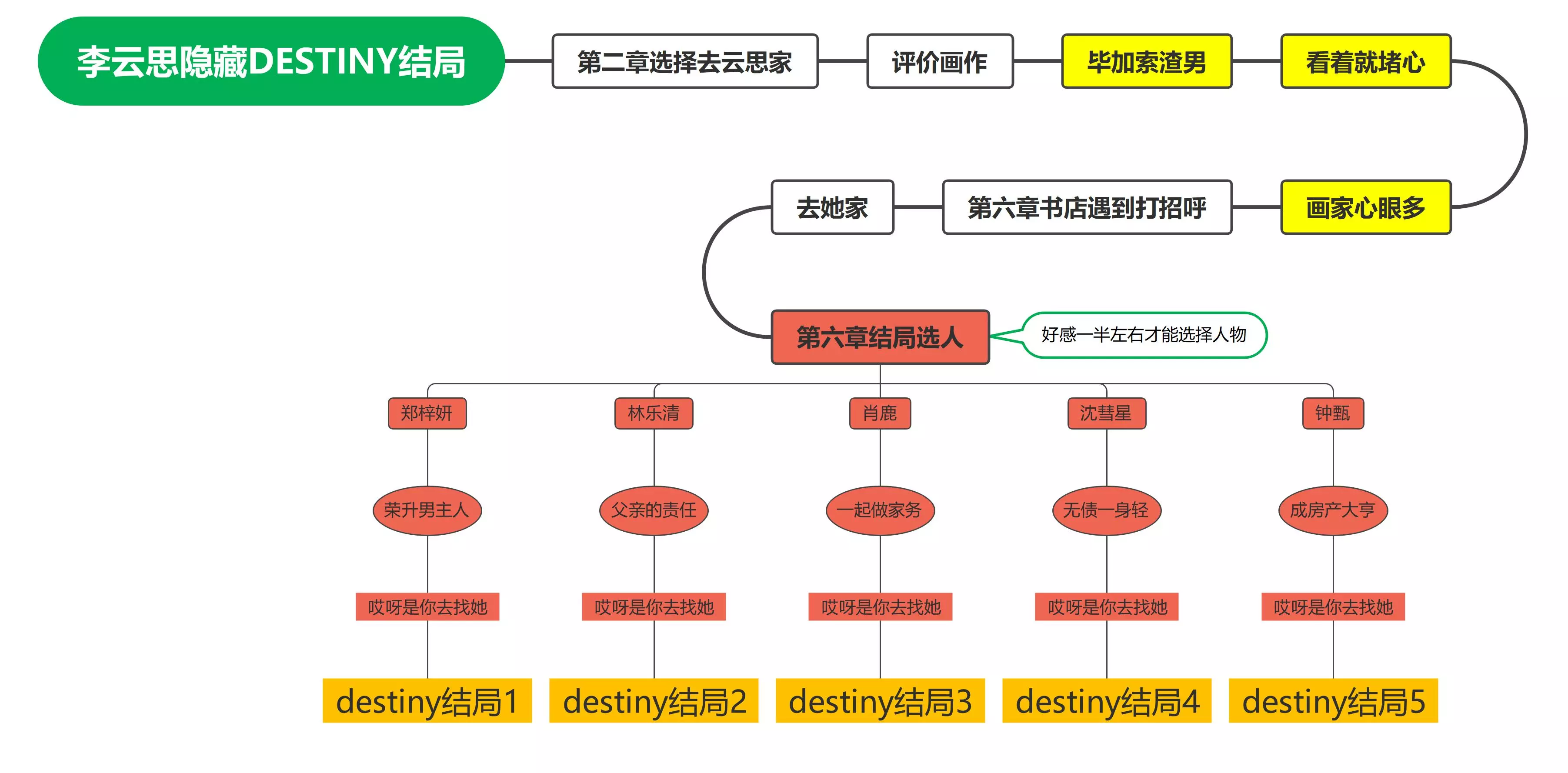 为了让大家通关有攻略,我做了图文版的通关教程,但是仅有结局,无成就教程!(仅供参考) 前言 很多朋友可能在玩这个游戏的时候不能解锁全结局,因此这个图文版结局很适合你! 以下是女主顺序 第一章:郑梓妍、李云思 第二章:肖鹿 第三章:沈彗星 第四章:林乐清 第五章:钟甄 大致是这么个顺序,可以按照这个顺序去玩 整体上女主都有自己的好结局和坏结局,李云思的有些特殊,可以根据需求来玩 郑梓妍结局篇
