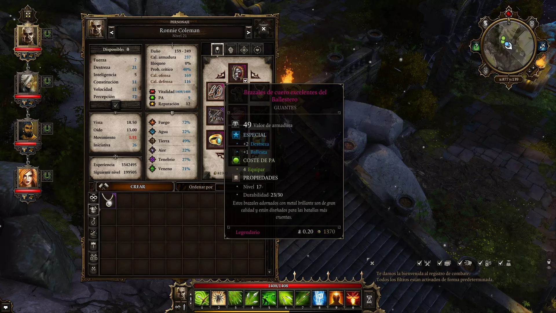 1 Ballestero 1 Arquero 1 Mago 1 Guerrero arma 2 manos Esta es una build todoterreno con muchísimo daño en área (fundamental para el 90% de los combates) y el mago + guerrero con habilidades de un solo objetivo para bajarte los bosses. Si eres un jugador experimentado posiblemente 2 magos combinando hechizos y efectos de estado sea lo más óptimo pero menos consistente. Ballestero Atributos (Inicio > Final) Fuerza 5 > 5 Destreza 5 > 10 Inteligencia 5 > 5 Constitución 6 > 7 Velocidad 9 > 9 Percepción 5 > 8 Recomiendo que sea uno de los dos personajes iniciales, equipa objetos con +destreza +percepción y +1 ballesta en guantes (los objetos de +2 de velocidad prioriza equiparlos si son buenos pues darán 1 punto más de acción, recuerda siempre tener velocidad con número impar). Sera el que detecte trampas e inflija mayor cantidad de daño por la gran probabilidad de crítico (acabas la partida con +35%). Empezamos maximizando la velocidad para empezar con el máximo de acciones que tendremos en toda la partida (más puntos no merece la pena), es lo más ventaja te da. La destreza es el atributo que maximizaremos según avancemos de nivel y cada 2-3 niveles metes un punto en percepción para seguir detectando tesoros de mayor nivel. Habilidades (Números a la derecha son puntos gastados, números a la izquierda rangos) +15 Ballesta 5 +6 Fuerza de voluntad 3 +6 Musculatura 3 +1 Geomante 1 +1 Hidrosofista 1 +1 Piroquinético 1 +15 Tirador Experto 5 +6 Liderazgo 4 Sera el personaje que dará el aura de liderazgo, equipa casco con +1 liderazgo y +1 por honesto en rasgos. Empezaremos la partida con 1 punto en ballesta 1 geomante 1 hidrosofista 1 tirador experto 1 piroquinético. Habilidades "invocar araña", "rebote" y "regenerar" (empieza el combate siempre invocando a la araña se hace mas fuerte con tu nivel, el regenerar pierde efectividad con el nivel por que no tendrás intelecto). En la plaza de mercaderes de Cyseal compra los libros: "lluvia" (hidro), "quema mis ojos" + "luciérnaga" (piro), "posición de precisión" + "flecha astillada" (tirador). Los siguientes libros serán de tirador adepto - "andanada" y de experto 2 - "lluvia de flechas" + "salva de flechas". Talentos 1. Amigo de los animales 1. Pies de plomo 3. Abusón 7. Más grande y más fuerte 11. Valiente (si tienes el rasgo de espiritual puedes ponerlo en "me la sopla") 15. Evitar 19. Explorador elemental ARQUERO Atributos (Inicio > Final) Fuerza 5 > 5 Destreza 5 > 13 Inteligencia 5 > 5 Constitución 6 > 7 Velocidad 9 > 9 Percepción 5 > 5 Recomiendo que sea el otro personaje inicial, equipa objetos de +destreza +1 arco en guantes y constitución o percepción como atributos secundarios. Habilidades(Números a la derecha son puntos gastados, números a la izquierda rangos) +15 Arco 5 +6 Fuerza de voluntad 3 +10 Musculatura 4 +1 Geomante 1 +1 Hidrosofista 1 +15 Tirador Experto 5 +3 Sabio 3 Personaje para identificar objetos, ten siempre 2 anillos con +1 sabio en el inventario y añade los 3 puntos cuando los necesites. Las mismas habilidades que el ballestero. Talentos1. Abusón 1. Me la sopla 3. Habilidoso 7. Más grande y más fuerte 11. Me la sopla 15. Evitar 19. Explorador elemental MAGO - Jahan Atributos(Inicio > Final) Fuerza 5 > 5 Destreza 5 > 5 Inteligencia 7 > 14 Constitución 6 > 7 Velocidad 5 > 9 Percepción 5 > 5 A Jahan lo encuentras en la biblioteca del ayuntamiento de Cecil en Cyseal. Los primeros cuatro puntos mételos en velocidad para capearla en 9. Equipa objetos de +1 inteligencia, en el casco + constitución (en 140 horas no he encontrado casco con + inteligencia). La inteligencia reducirá el enfriamiento de las habilidades y aumenta el daño/curación de las habilidades. Habilidades(Números a la derecha son puntos gastados, números a la izquierda rangos) +6 Fuerza de voluntad 3 +6 Musculatura 3 +10 Aeroteúrgo 4 +15 Brujería 5 +15 Hidrosofista 5 +1 Hombre de armas 1 Al ser el único mago del grupo es importante no gastar ningún punto en liderazgo, sabio, forzar cerraduras etc ya que ira justo en puntos. La combinación de aero + hidro es la más poderosa del juego, la combinas con brujería para los hechizos de soporte. En cada combate empieza siempre activando "posición cuerpo a cuerpo poderosa", los hechizos se potencian con esta habilidad aunque no sean cuerpo a cuerpo y al no poder fallar es un +20% de daño gratis. En Cyseal compra el libro de "invocar araña" y "aceite de medianoche" (geomante) para combinar el charco de aceite con "luciérnaga" (piro) del ballestero. En el late game prioriza subir hidro y aero a nivel 4 para los hechizos de maestro: "granizada" (hidro) + "rayos desencadenados" (aero). Luego maxea brujería para "chupalmas" (reduce todas las estadísticas del juego, fundamental para boses en dificultad honor) y "puñetazo mortal" (el hechizo que mas daño hace del juego a un solo objetivo). Talentos1. A lo lejos 1. Científico 3. Afinidad elemental 7. Hedor 11. Más grande y más fuerte 15. Habilidoso o Me la sopla 19. Sabelotodo Jahan empezará con a lo lejos y científico de base, sera el herrero del grupo. Hedor y sabelotodo reducirá mucho la reputación afectando al precio y actitud de los npcs a el, pero como interactuarás y compraras solo con los arqueros no afecta. Al nivel 15 si quieres conseguir aero nivel 5 para la segunda habilidad de maestro pilla habilidoso, si vas bien me la sopla reduce en 1 turno las efectos con tirada por musculatura. GUERRERO - Madora Atributos(Inicio > Final) Fuerza 8 > 13 Destreza 5 > 5 Inteligencia 5 > 5 Constitución 7 > 8 Velocidad 5 > 9 Percepción 5 > 5 A Madora la encontraras en la taberna del Rey Cangrejo en Cyseal. Sera el tanke del grupo aunque no llevara escudo por que pierde utilidad rápido y arma a 2 manos escala bien gracias al crítico en el final de la partida. Los primeros cuatro puntos también mételos en velocidad y equipa objetos con fuerza y constitución o percepción, en el cinturón es fácil encontrar un