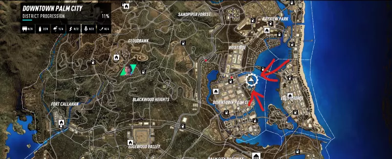 4. 位置 前往该位置并跳过河流。(警察不会跳过河流) 【注意】你的速度需要至少达到90英里/小时才能完成此跳跃