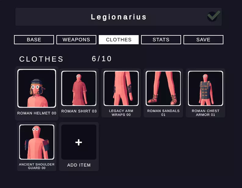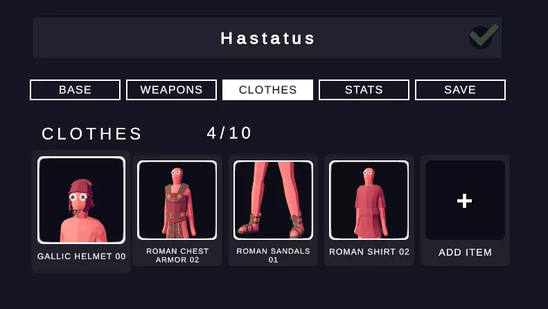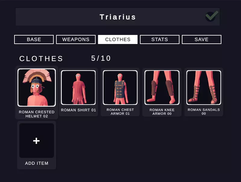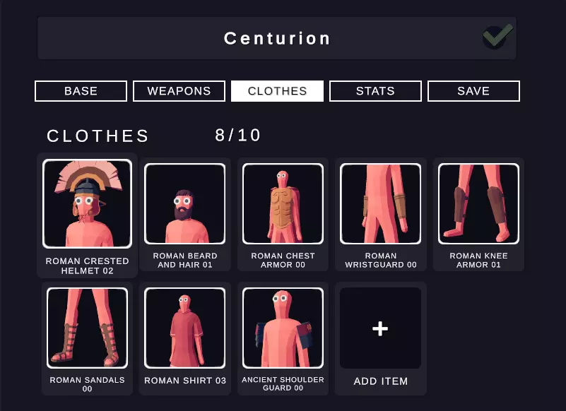 属性 尽管军团士兵的属性由你决定,但我为其设定了这些特定属性,使其与百夫长或三线步兵形成明显区分。我建议如下: 生命值:300 体型:1.20倍 单位重量:2.00倍 移动速度:1.40倍 攻击速度:0.50倍 伤害:3.50倍 成本:500 角斗士