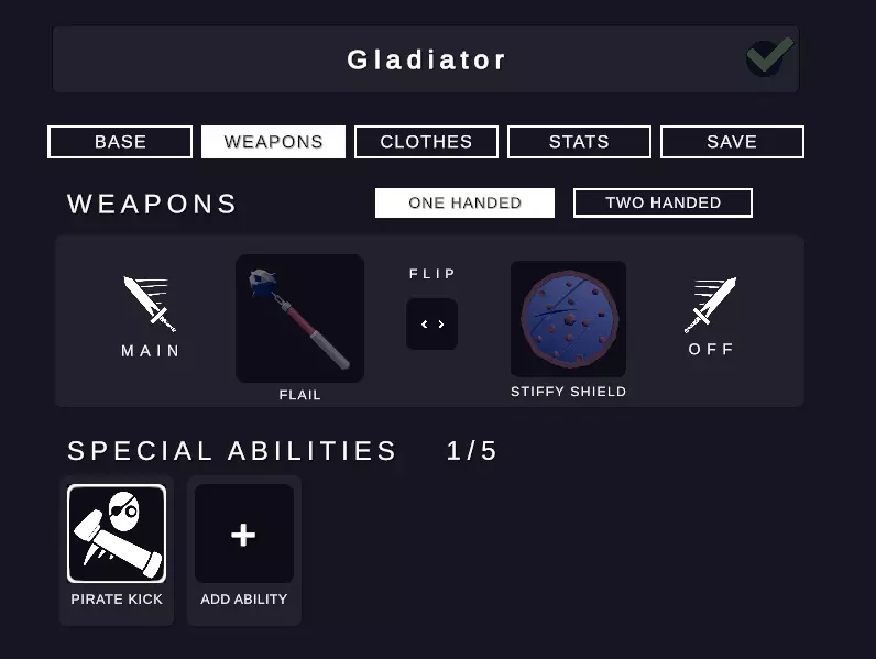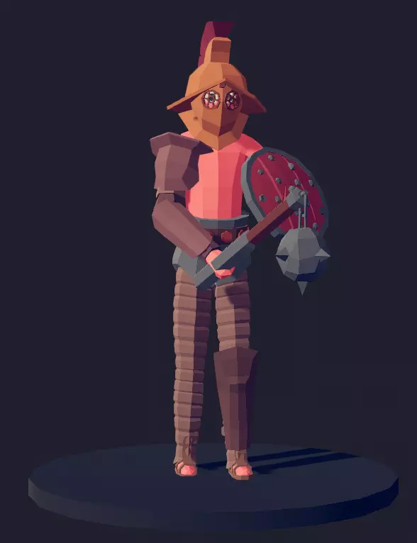 历史背景:角斗士(Gladiatores,单数形式为gladiator)通常是奴隶或已定罪的罪犯,不过自由人也可以自愿成为角斗士。他们在圆形竞技场(如罗马著名的斗兽场)中进行战斗。角斗士使用的装备多样,从网和长矛到全身板甲和双手镰都有。他们会相互搏斗、与罗马士兵对抗,甚至与野生动物厮杀。角斗既可以作为处决方式,也能让角斗士为自由和荣耀而战,而罗马民众则非常喜爱这种娱乐活动。武器 由于角斗士可以选择自己的武器和战斗风格,而我无法在一个单位中准确描绘所有这些内容,因此我决定采用一种典型的电影式处理方式——一套不标准且明显不符合时代背景的装备。在全面战争模拟器(TABS)的战斗中,链枷和小圆盾仍然能为角斗士提供强大的攻击力。【海盗踢】技能则体现了他们在战斗中的凶猛,因为他们往往没什么可失去的,会为了胜利而不择手段地战斗。