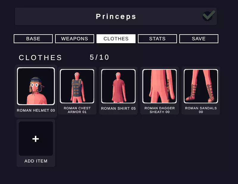 历史背景: 军团的主体是壮年兵(principes,单数形式为princeps)。他们是处于体能巅峰、装备更精良的罗马士兵。最初,他们和青年兵(hastati)一样配备长矛(hastae),但后来也换装了经典的短剑(gladii)和标枪(pila)。 壮年兵在轻装兵(velites)和青年兵之后投入战斗:由于年龄更大、装备更好且通常更有经验,当他们与可能已和青年兵战斗了30分钟或更长时间的疲惫敌人交战时,往往能迅速击溃对方。一旦敌人溃败,被称为骑士团(equites)的罗马骑兵就会对其进行追击。 武器: 在《全面战争模拟器》(TABS)中,武器的多样性相当有限,单位目前只能装备两种武器。否则我会在 Hastatus 和 Princeps 进入近战之前给他们配备一次使用投矛(pilum)的机会。不过目前,Princeps 凭借其【闪避格挡】技能,再加上他们的盾牌基本能无视敌人投射物的特性,依然是一支强大的单位。