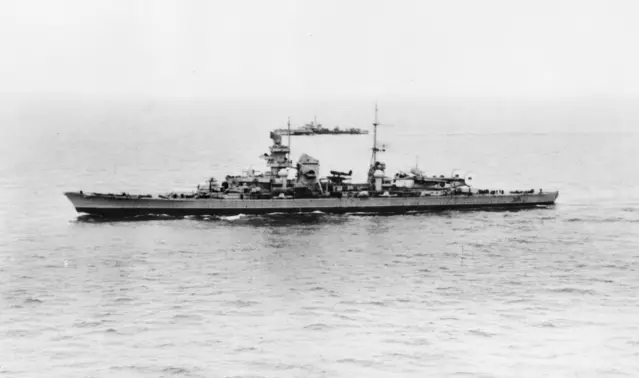 欧根亲王号历史 欧根亲王号是希佩尔海军上将级重巡洋舰,为该级五艘舰艇中的第三艘。它在二战期间服役于纳粹德国海军。该舰于1936年4月铺设龙骨,1938年8月下水,并在战争爆发后的1940年8月正式服役。其舰名源自18世纪奥地利籍将领——萨伏依的欧根亲王。该舰装备有八门20.3厘米主炮,尽管名义上符合《英德海军协定》设定的10,000长吨吨位限制,但实际排水量超过16,000长吨。 欧根亲王号曾参与1941年5月的“莱茵演习”行动,当时它与俾斯麦号战列舰一同尝试突入大西洋。在丹麦海峡海战中,两艘舰船击沉了英国战列巡洋舰胡德号,并使战列舰威尔士亲王号遭受中度损伤。欧根亲王号在行动中与俾斯麦号分离,执行袭击盟军商船的任务,但因引擎故障而提前结束。该舰驶入被占领的法国进行维修后,参与了“地狱犬行动”——一次大胆的日间穿越英吉利海峡返回德国的行动。1942年2月,欧根亲王号被部署至挪威,然而在抵达挪威水域数天后,便遭英国潜艇三叉戟号鱼雷袭击,其驻留时间因此缩短。鱼雷严重损坏了舰尾,迫使该舰返回德国进行维修。该舰重新服役后,在波罗的海用了数月时间训练军官学员,随后在东线为撤退的德国陆军提供炮火支援。1945年5月德国战败后,该舰向英国皇家海军投降,之后作为战争战利品移交给美国海军。在美国对该舰进行检查后,美国海军将这艘巡洋舰指派参加在比基尼环礁进行的十字路口行动核试验。在原子弹爆炸中幸存下来的欧根亲王号被拖至夸贾林环礁,最终于1946年12月倾覆沉没。如今,残骸的部分结构仍在水面以上可见,位置大约在布科茨陆军机场西北方向两英里处,位于埃努布吉岛的边缘。她的一个螺旋桨被打捞上来,现陈列于德国拉伯海军纪念馆。