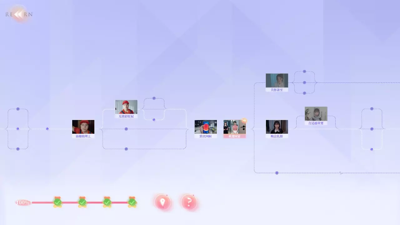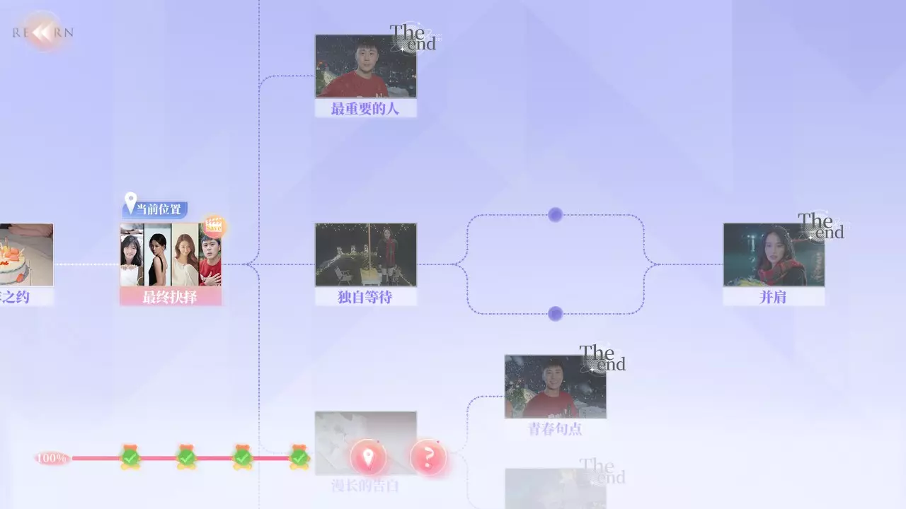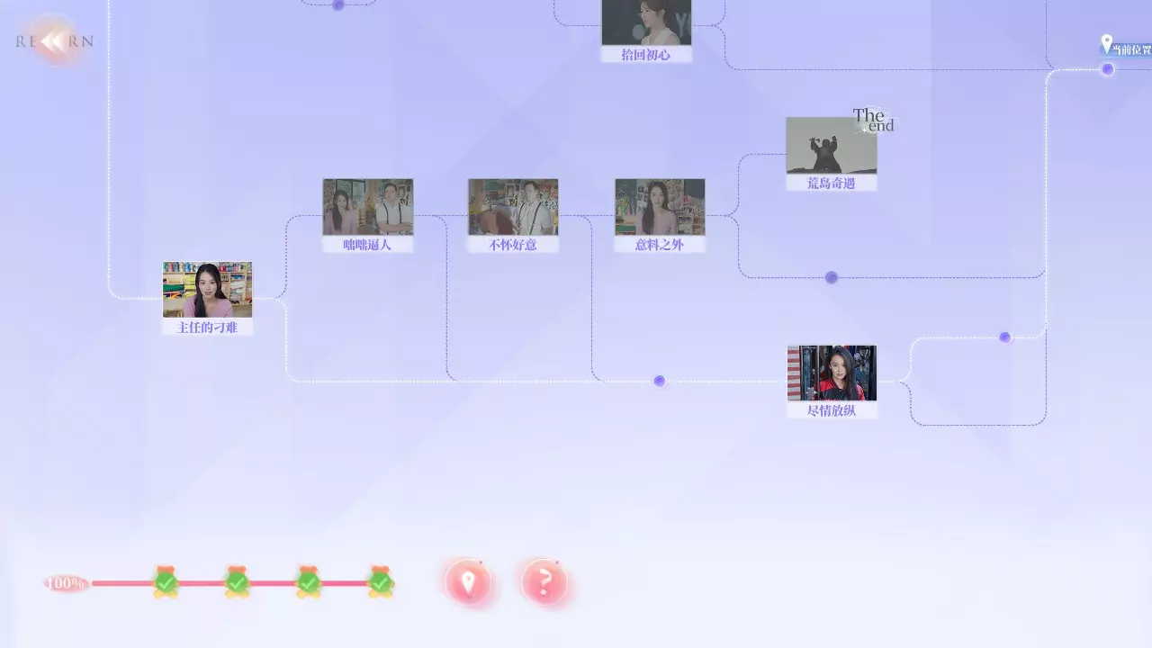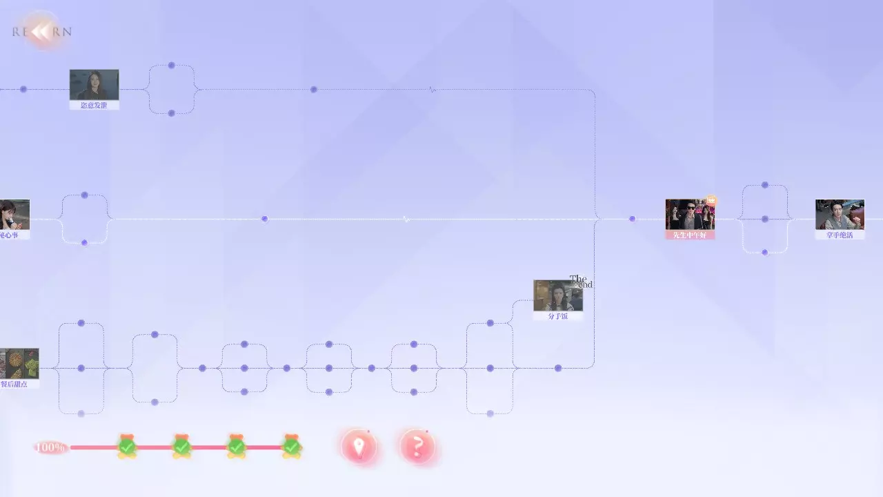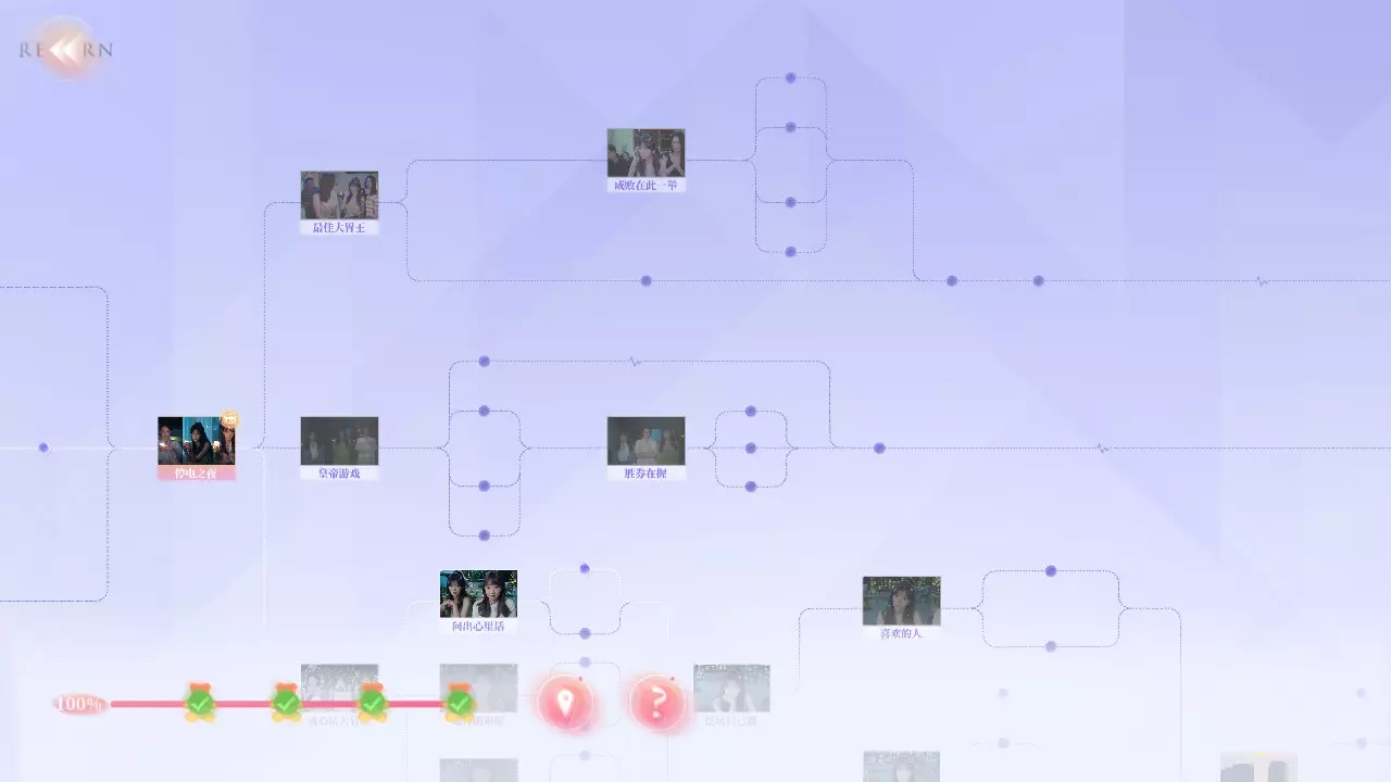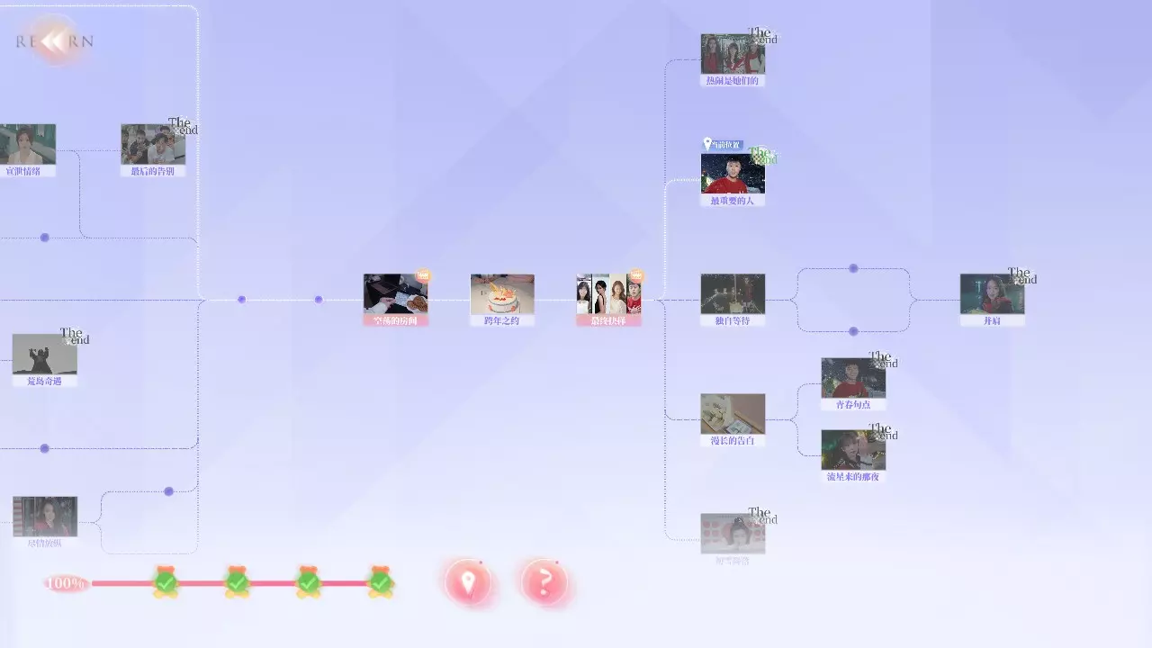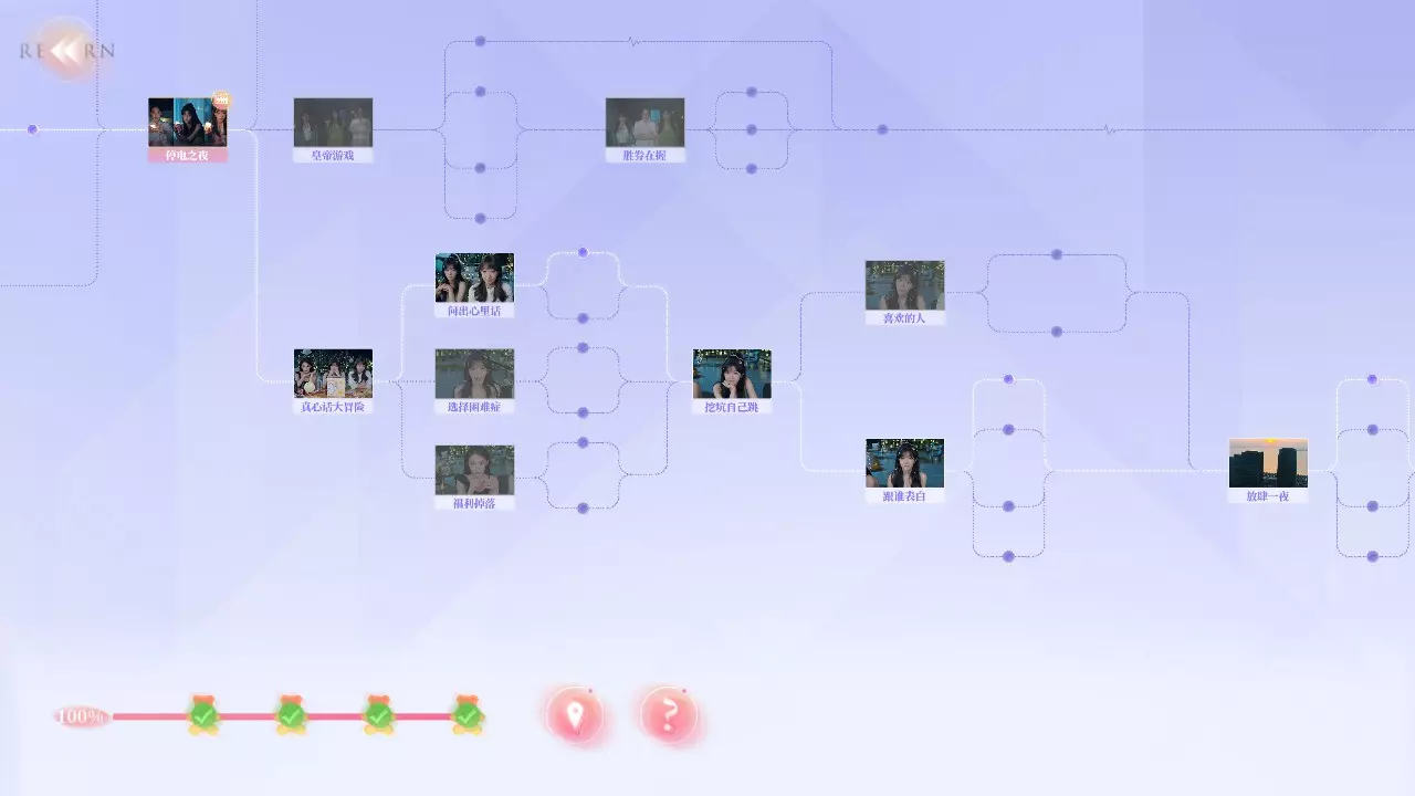 Q2:为什么不能使用快进功能? A2:你需要曾经完成过的剧情才能使用快进,但在部分剧情中无法快进。例如:夏天拍照时,即使上一次拍好了,下一次拍丑了,返回一开始时无法快进,需要重拍。 Q3:为什么我的探索度不满? A3:在部分选择时,有的剧情是通过消耗选择时长来解锁,或者需要在特定好感度内才能达成部分故事结果。例如:夏天开始时的三个选项中,如果在读条结束时未做出选择,则解锁新剧情;又或者在最后【哭泣的女人】成就时,需要与夏天好感不足来触发结局。 游戏界面
