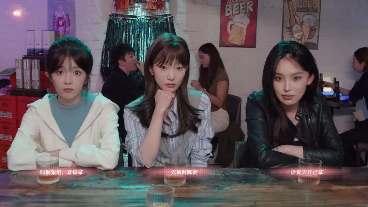 选项 好感度 其他补充 1. 跟陈赛去上班 (陈赛+,夏天-,颜佳宁-) ➩ 场景【流言蜚语】 2. 跟夏天出去玩 (夏天+,陈赛-,颜佳宁-) ➩ 场景【点单大权】 3. 跟颜佳宁郊游 (颜佳宁+,夏天-,陈赛-) ➩ 场景【我有一个朋友】[老六直通] 若选项是锁住的,则表示与该角色的好感度不够。