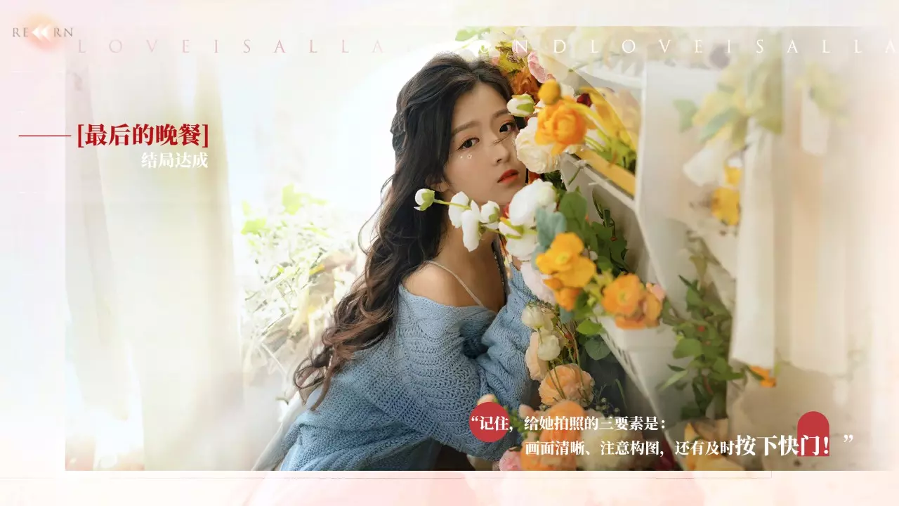 一共可以给夏天拍照3次,按照系统计算,照片聚焦后的照片就算夏天认为好看的照片。 拍错需要重新拍摄时,需返回【餐后甜点】场景任意选择后重新拍摄。根据拍摄效果(拍好、拍差、不拍)会解锁不同动画,并影响夏天的好感度:拍好会增加好感度,拍差无变化,不拍会降低好感度。 若要达成100%探索度,每个场景都需要分别进行拍好、拍差、不拍操作,共9次。 拍照结束后,会触发三条支线,分别对应以下情况:三次都拍好、任意拍照、三次都不拍且菜品选择非夏天最爱的菜。