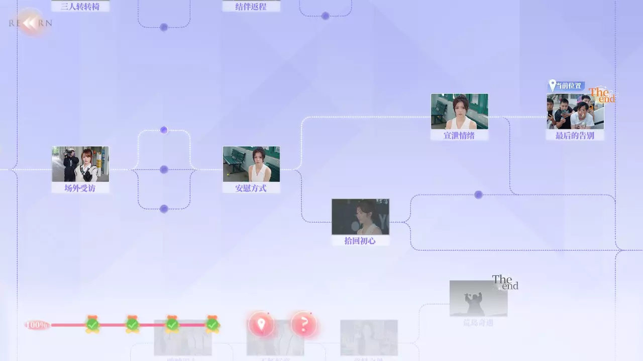 选项 好感度 其他补充 1. 从颜佳宁开始 (颜佳宁-) 2. 从老六开始 无 3. 从自己开始 无 结伴返程